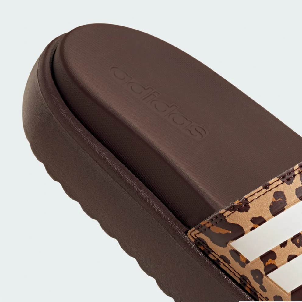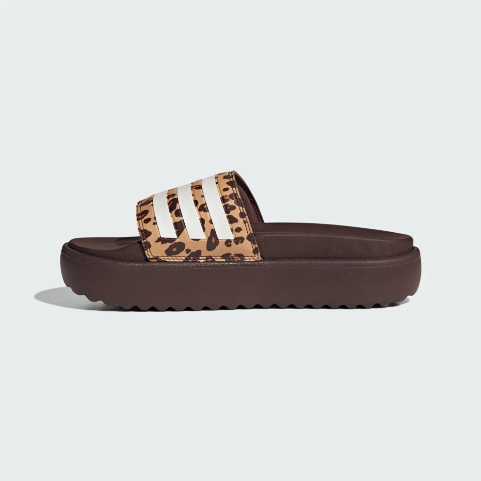The coolest way to show off your pedicure. These adidas platform slides look at home by the pool and in the city with 3-Stripes wrapped around the smooth bandage uppers. These sandals have a contoured footbed and a cushioned EVA outsole for maximum comfort.
