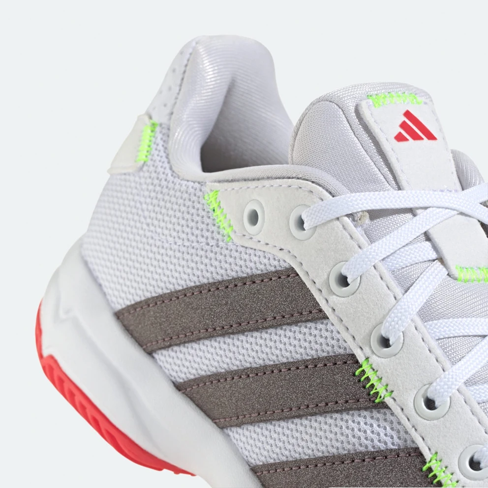 Level up your indoor game. These juniors' adidas shoes provide stability and power with every move. A breathable mesh upper keeps feet feeling fresh while the Torsion System adds support for quick changes in direction. Adiprene+ cushioning in the forefoot absorbs impact and returns energy, fuelling explosive starts and stops. An Adiwear outsole grips the court without leaving marks. With a design inspired by the highly-regarded Stabil 16, these shoes give you the confidence to go after your goals. This product features at least 20% recycled materials. By reusing materials that have already been created, adidas help to reduce waste and our reliance on finite resources and reduce the footprint of the products adidas make.
