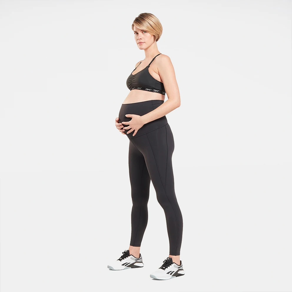 This Reebok nursing sports bra makes it easier to get fit post-pregnancy. Removable pads provide coverage, and easy-release clips on the straps make nursing on the go less of a hassle. Ruching in front and a repeating Vector logo on the band add the finishing touches.