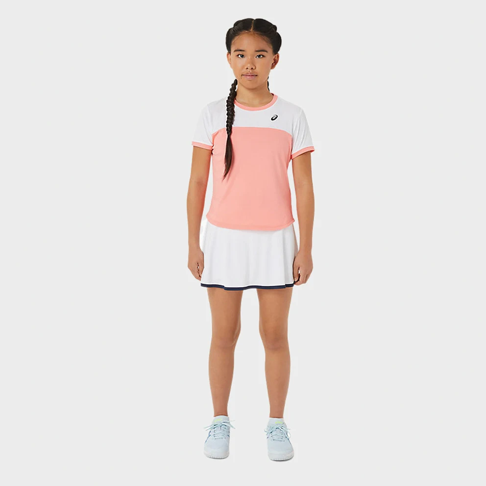 Your young tennis player has all the comfort and flexibility she needs on the court while developing her skills with this Asics Skort Kids Tennis Skirt. It has built-in shorts for freedom of movement in her shoots and is made of water-repellent fabric for easy drying. Drawstring adjustment at the waist allows for a perfect fit so she's ready for any bounce!