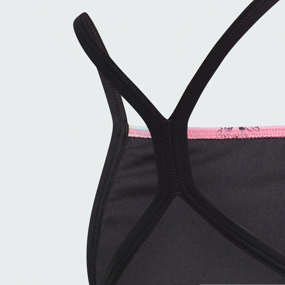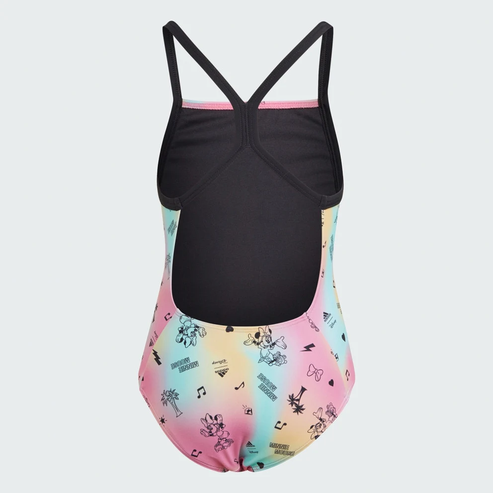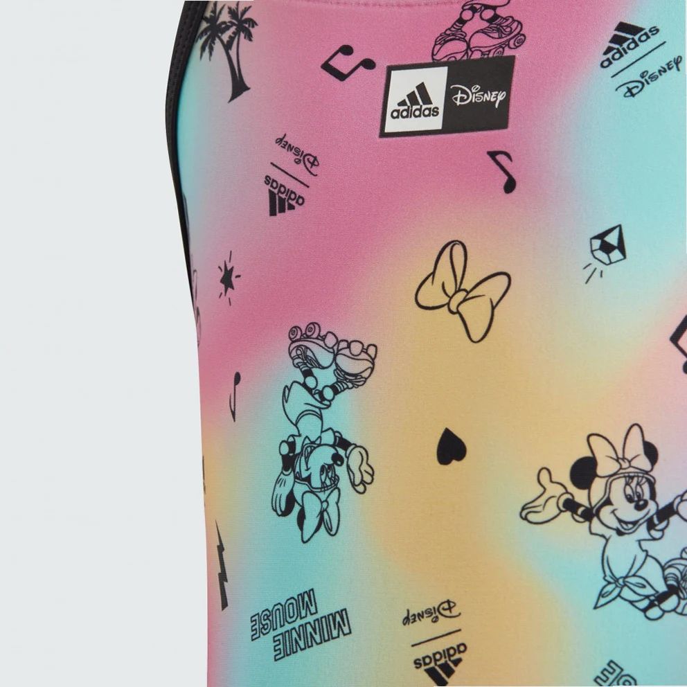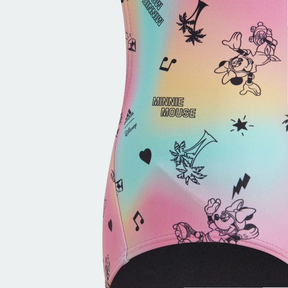 Disney's Minnie Mouse takes your little one on a roller-skating adventure in this adidas swimsuit. Miami-inspired colours make the suit a burst of fun for any beach day or pool party. The playful print featuring Minnie skating under palm trees gives it vacation vibes. This product is made with at least 70% recycled materials. By reusing materials that have already been created, adidas help to reduce waste and our reliance on finite resources and reduce the footprint of the products adidas make.