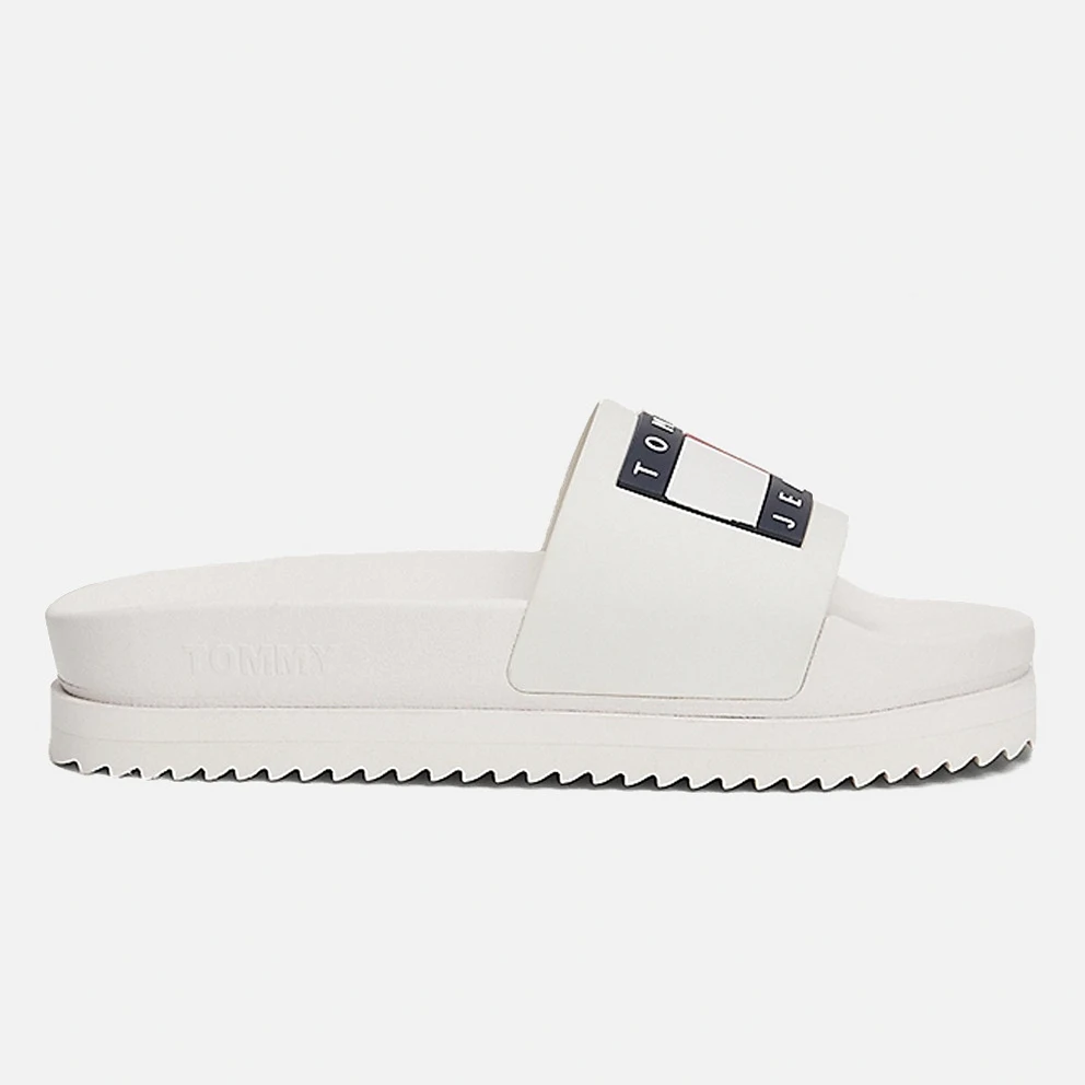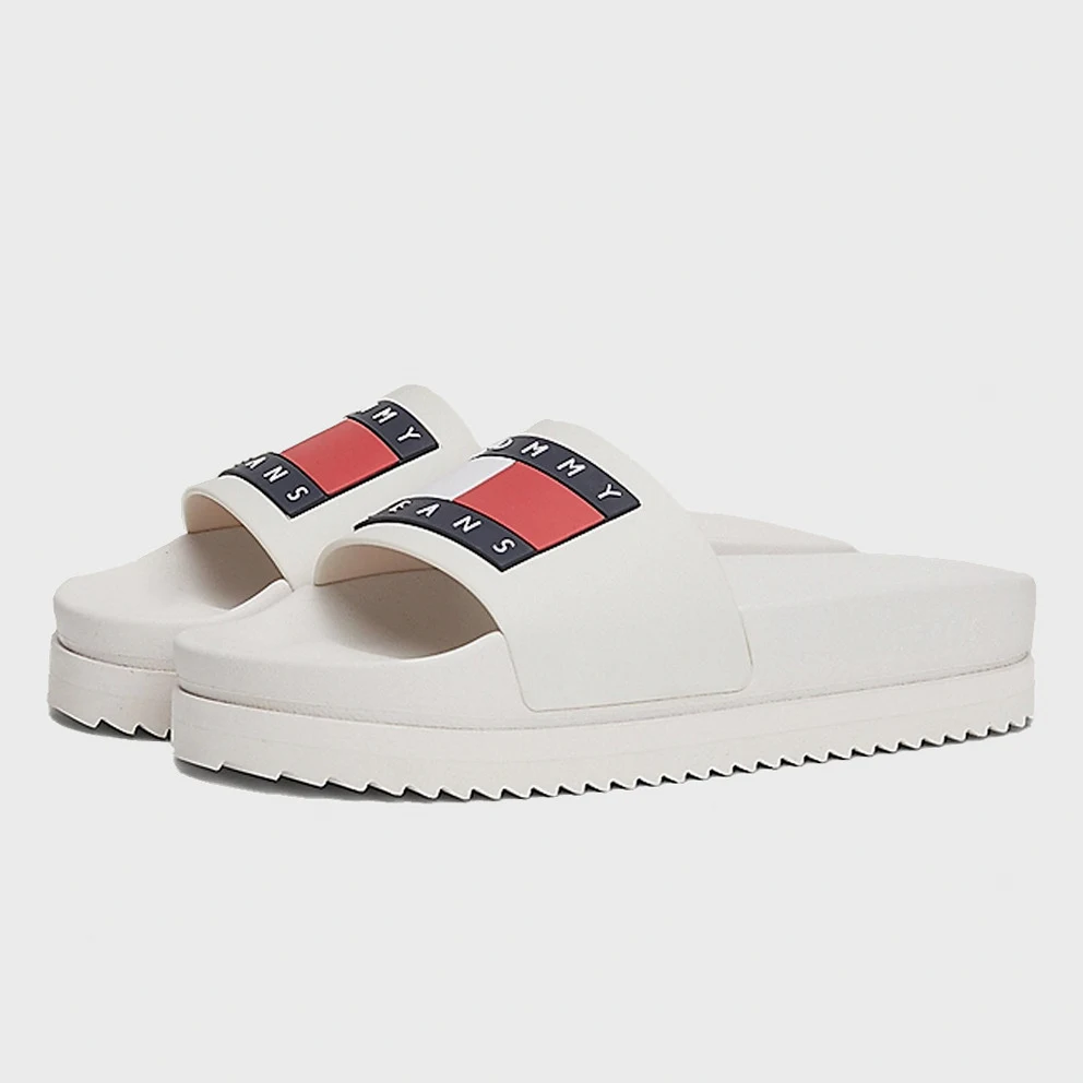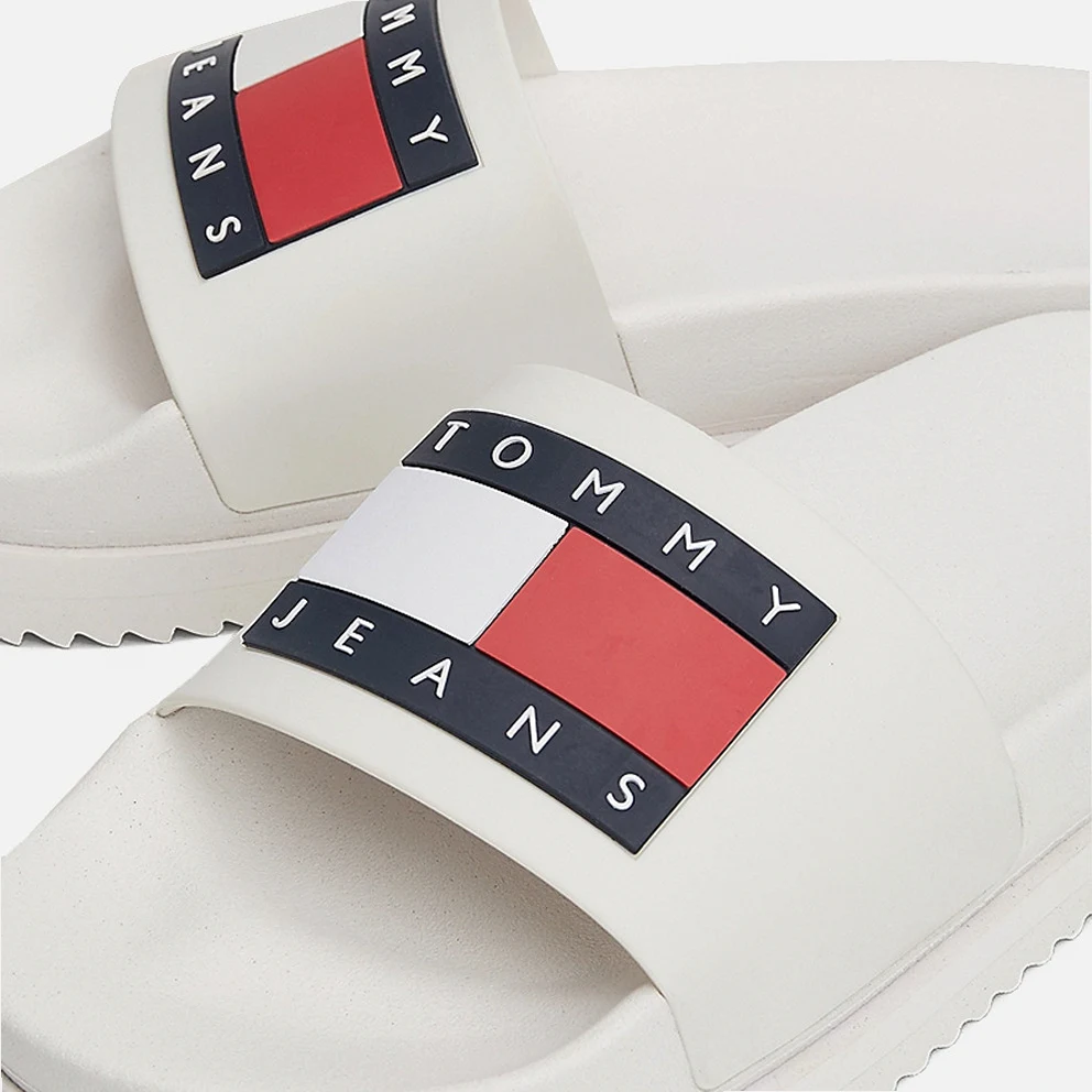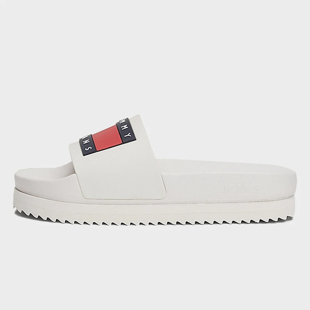 Create the ultimate beach look with these women's slides. Features a flat sole and Tommy Hilfiger logo.