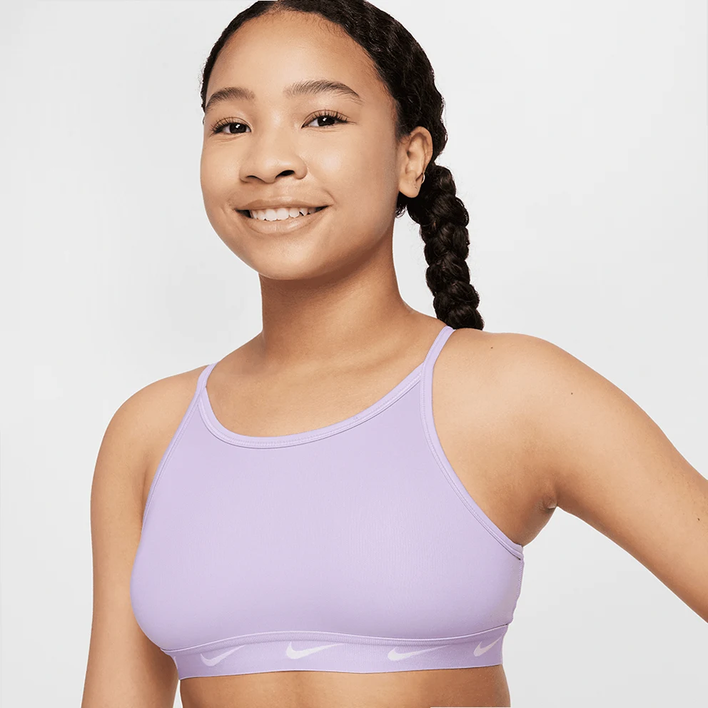 The Nike Swoosh Sports Bra is designed for comfort with smooth, sweat-wicking fabric to help you stay dry while you play.