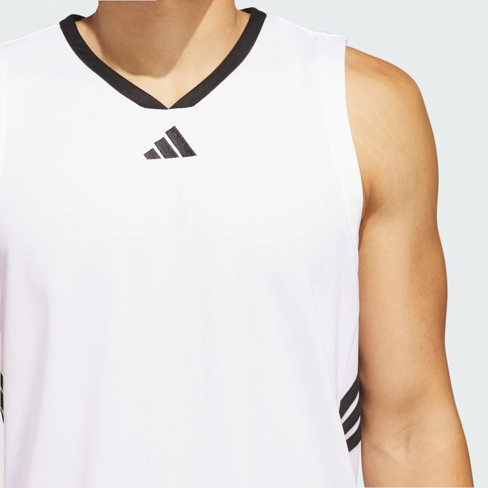Classic comfort for the court. This adidas basketball jersey features wide arm holes and V-neck for a full range of motion on every jump shot. A 3 Bar logo on the chest and 3-Stripes on the side body complete the iconic look.This product is made with 100% recycled materials. By reusing materials that have already been created, adidas help to reduce waste and our reliance on finite resources and reduce the footprint of the products adidas make.