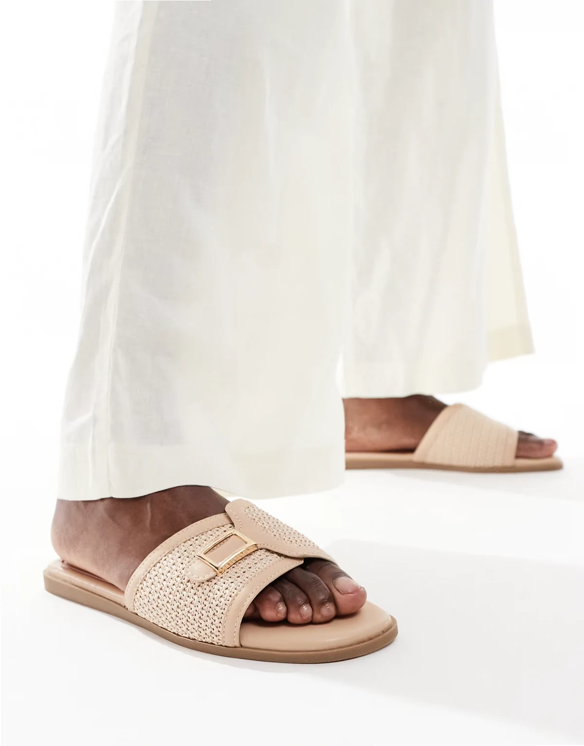 SEQWL Murray buckle detail flat sandals in beige