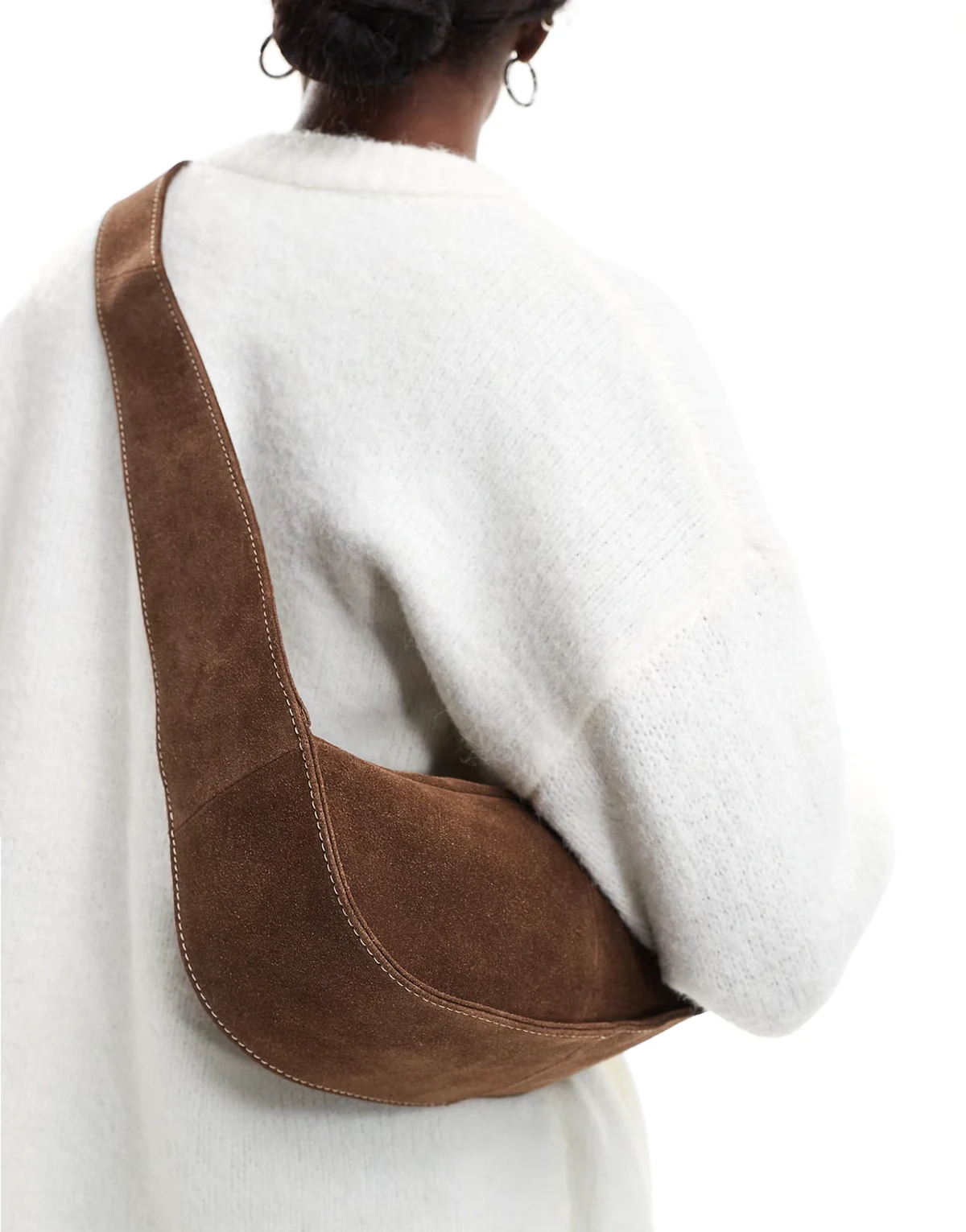 ASOS DESIGN suede sling crossbody bag in chocolate
