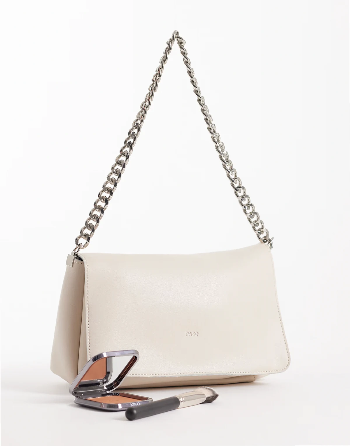 PASQ flap over crossbody chain purse in beige