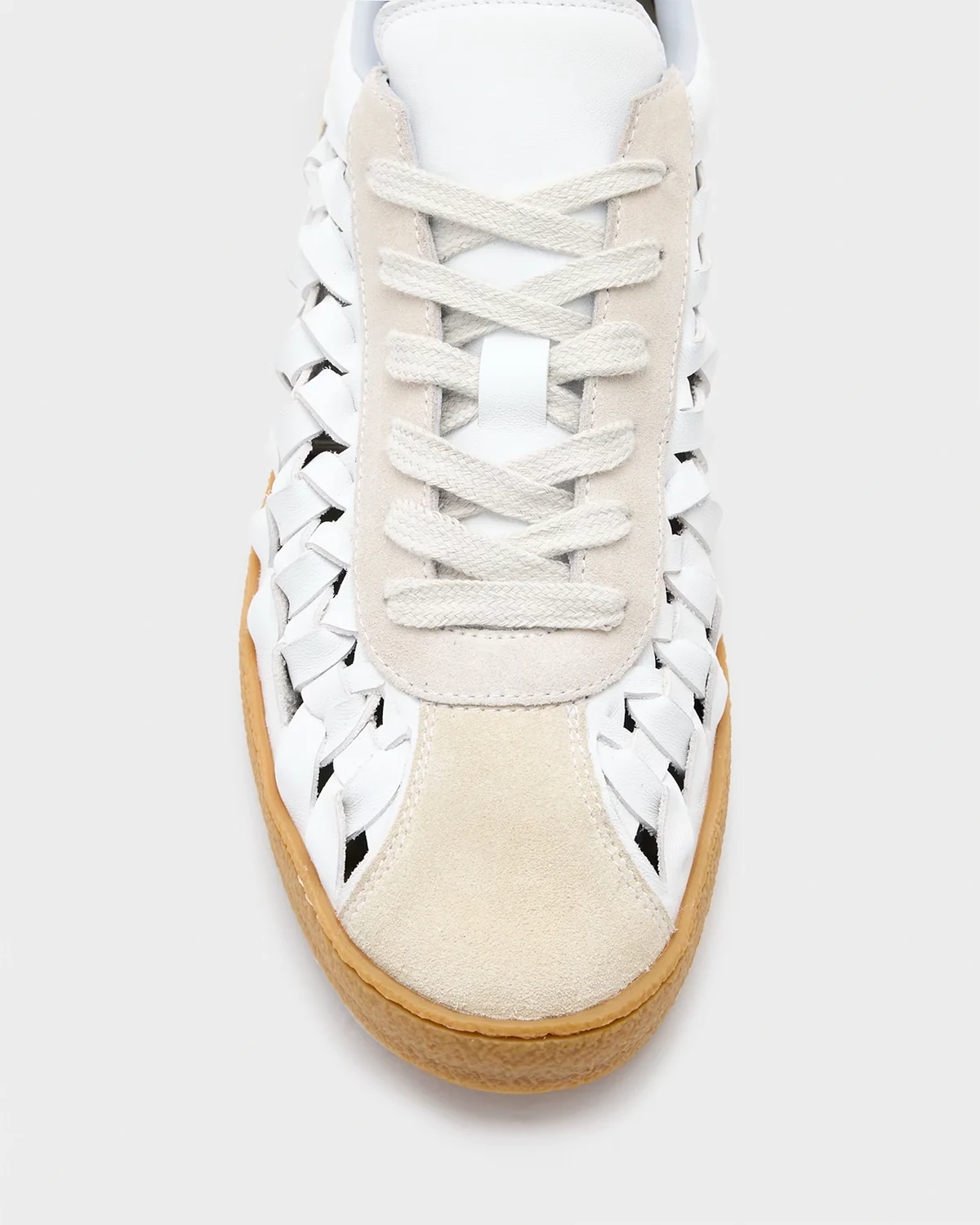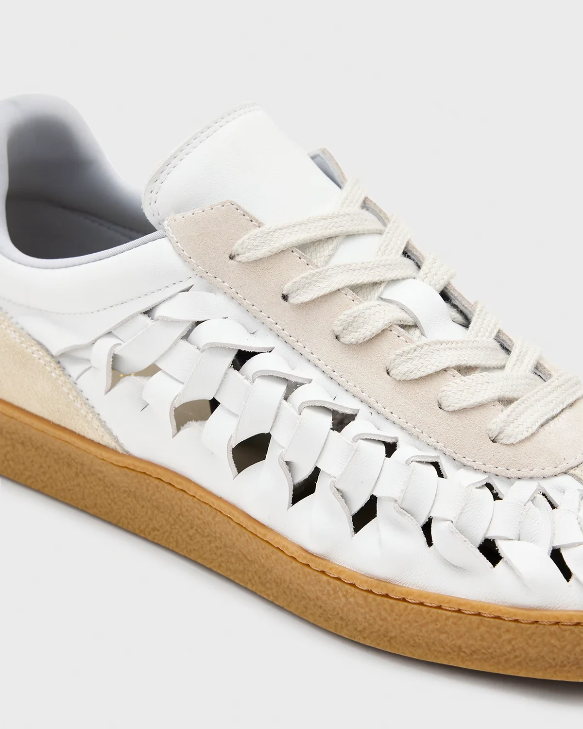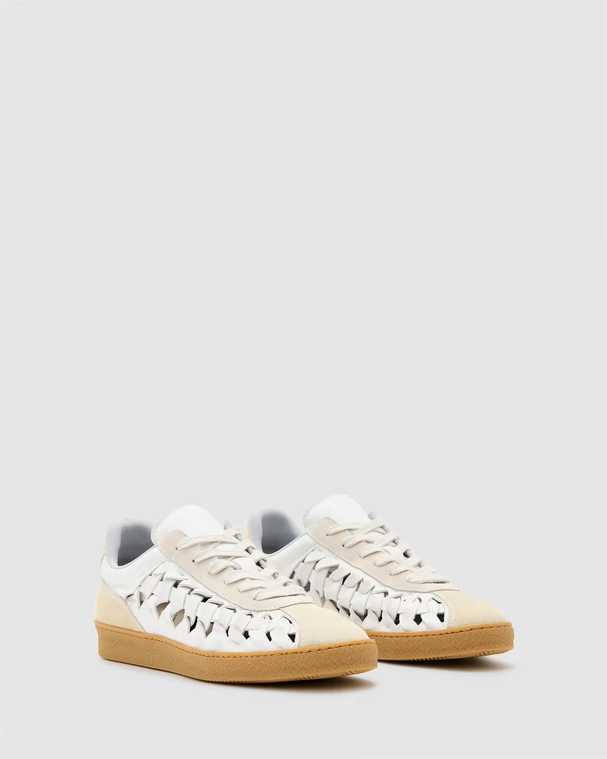 AllSaints Velma leather woven sneakers in chalk white