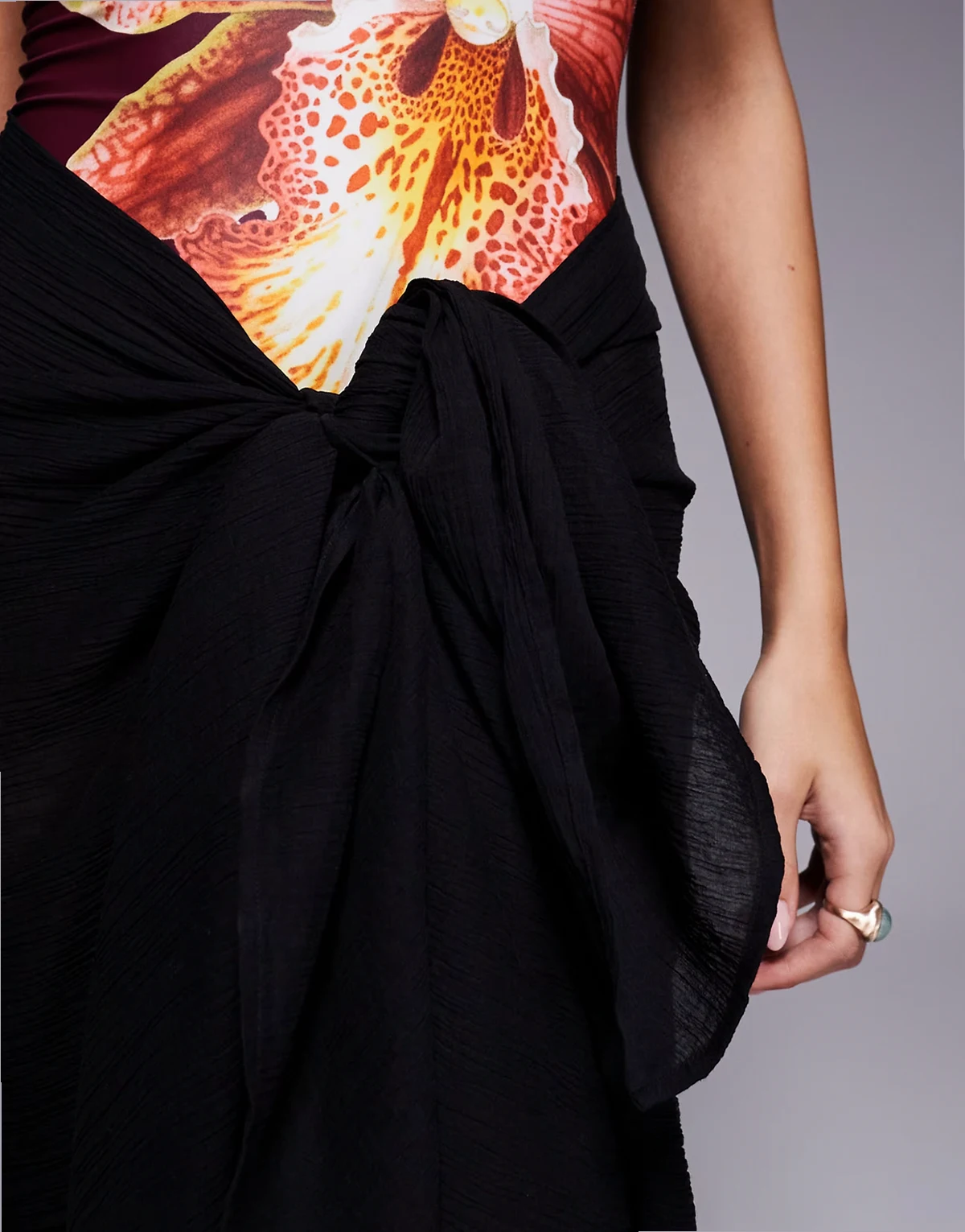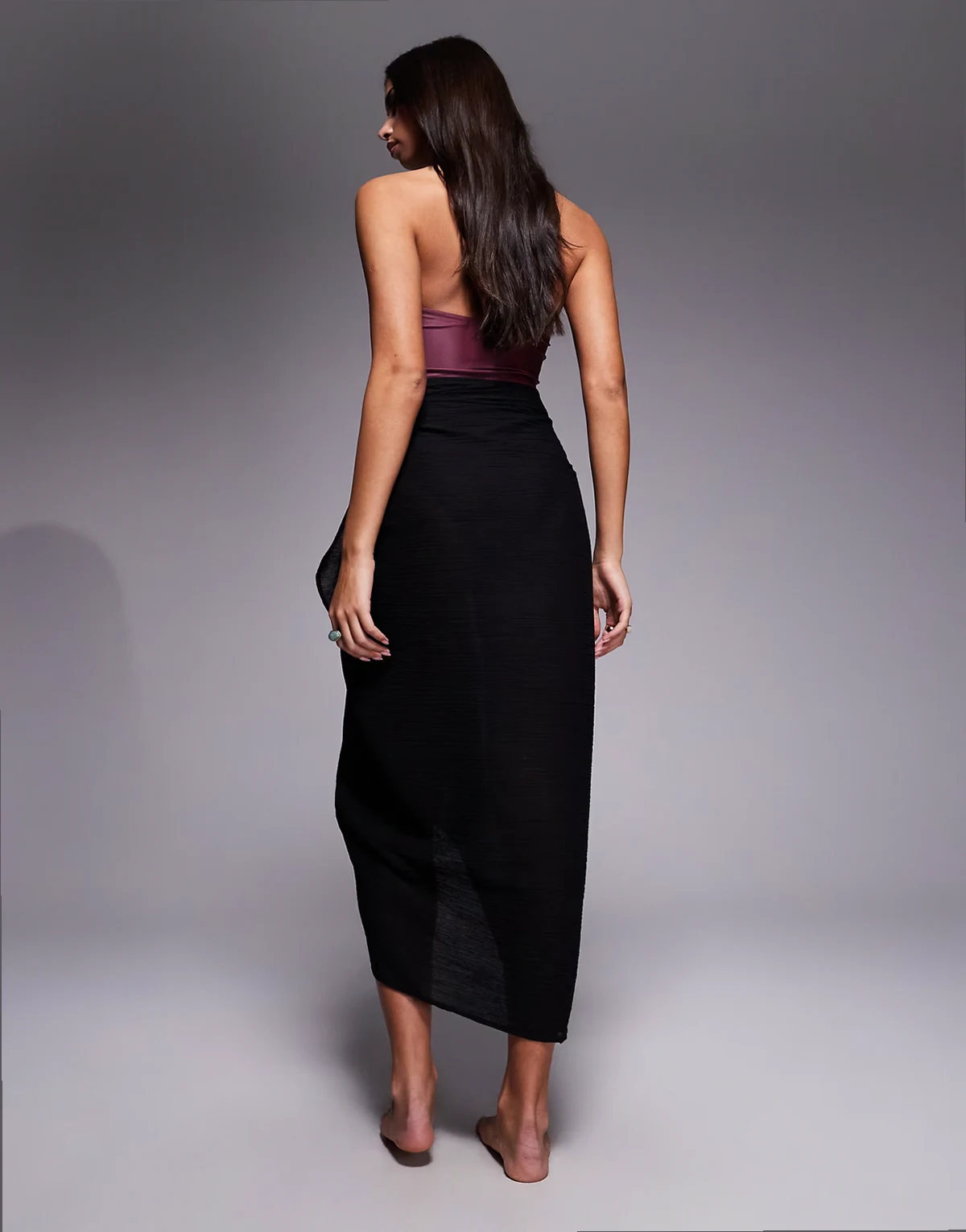 ASOS DESIGN beach cotton crinkle maxi sarong in black