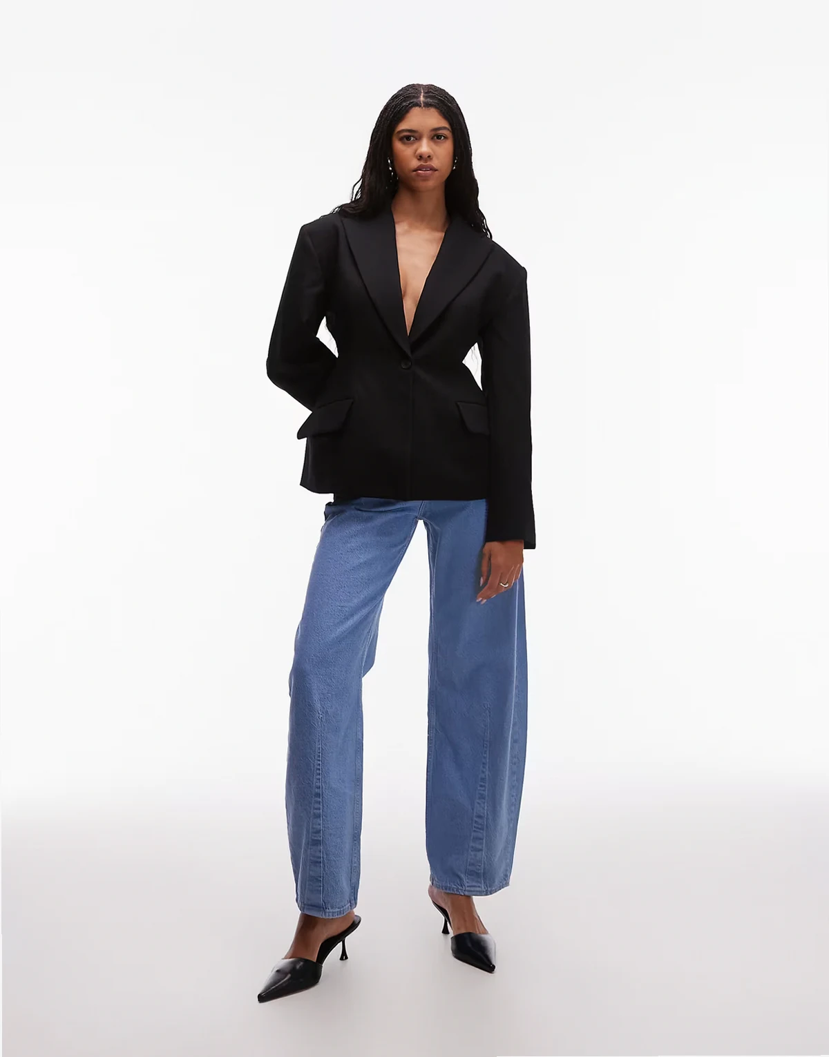 ASOS DESIGN sculpted cinch waist blazer in black