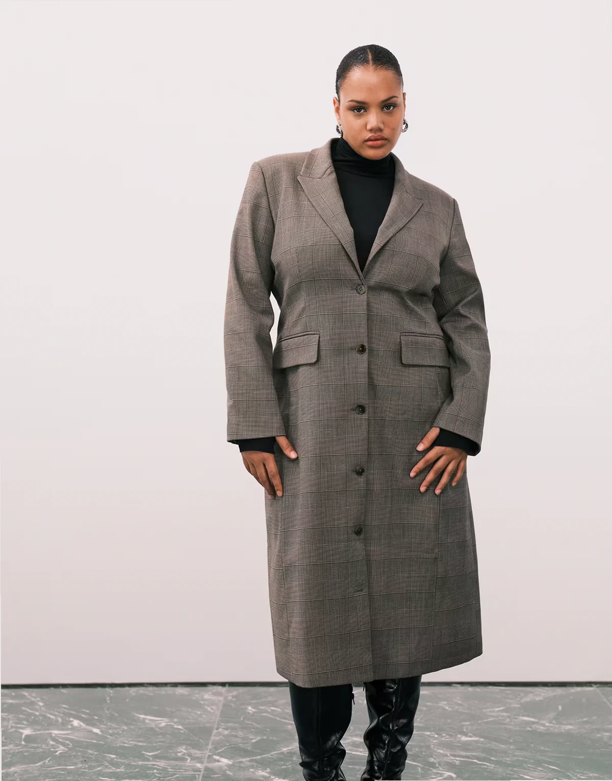 ASOS DESIGN Curve tailored longline blazer in plaid