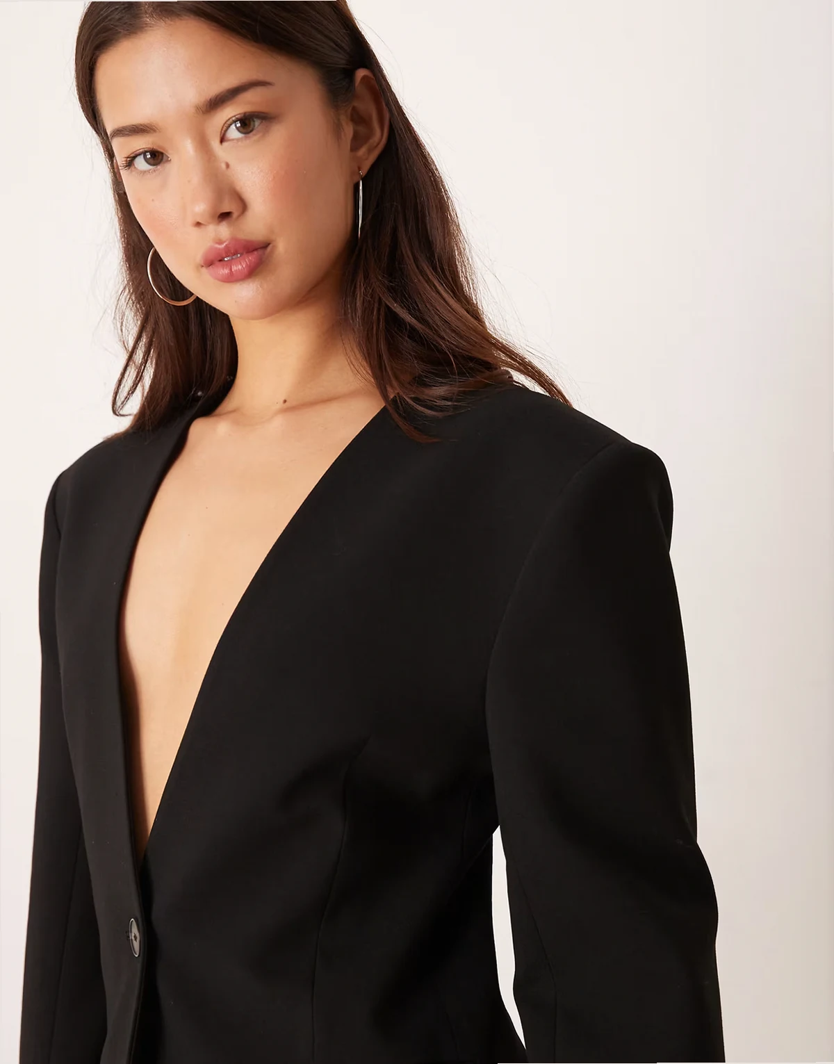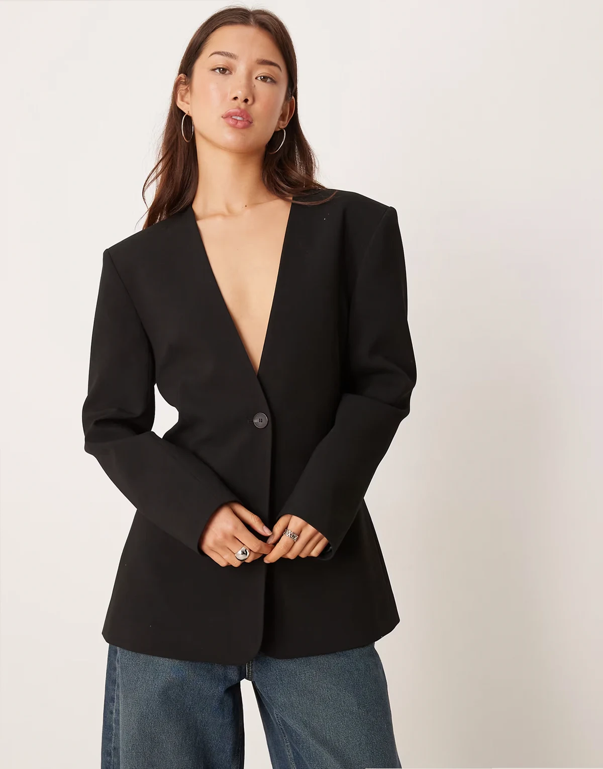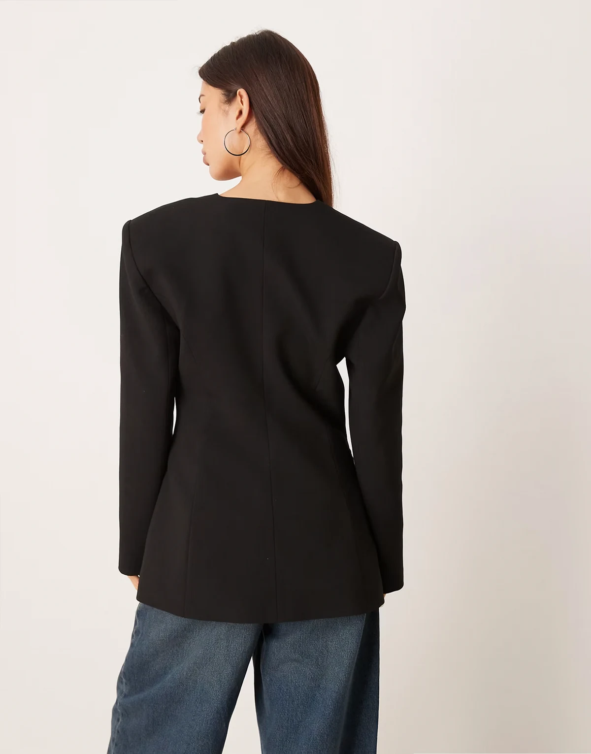 ASOS DESIGN strong shoulders cinched waist blazer in black