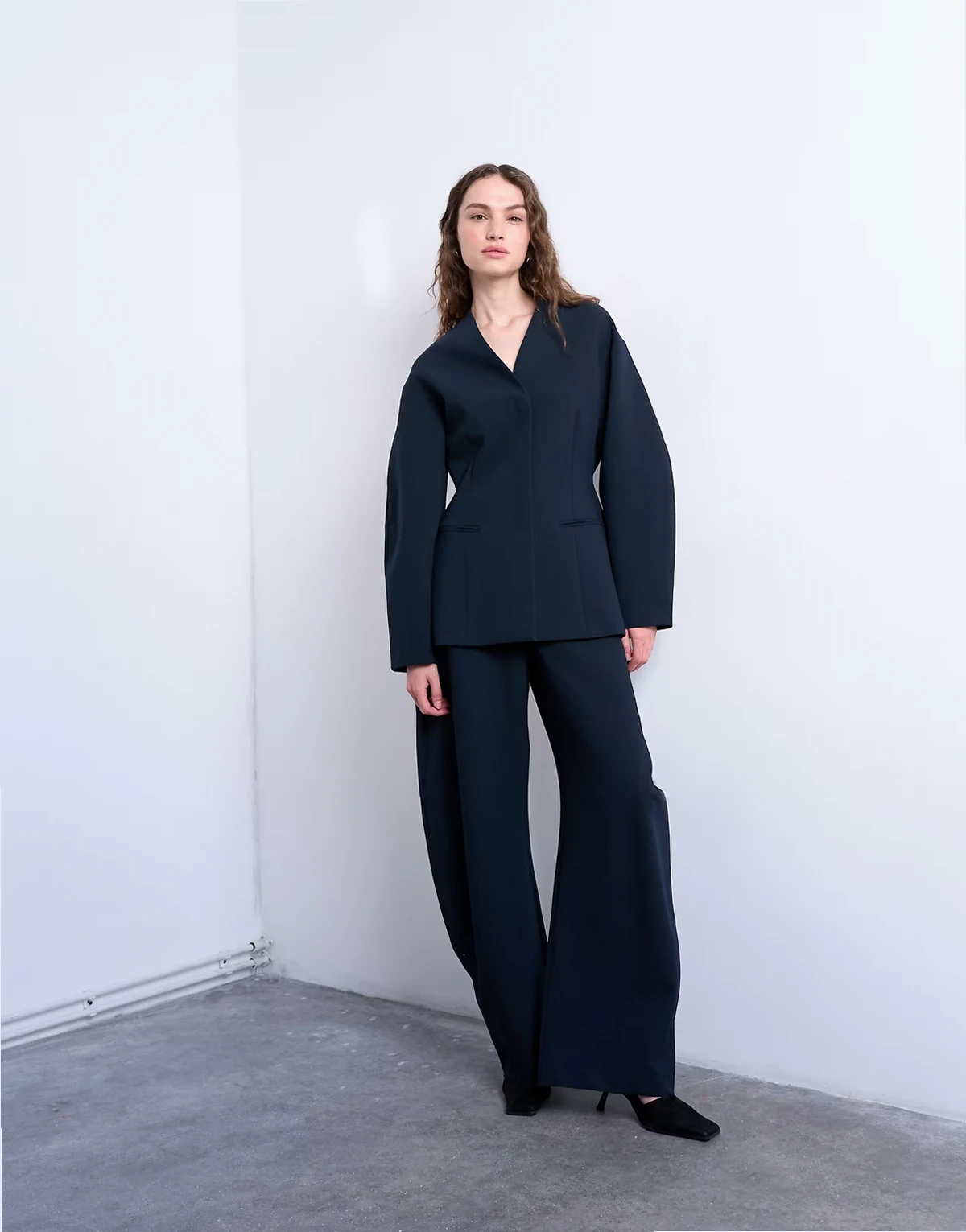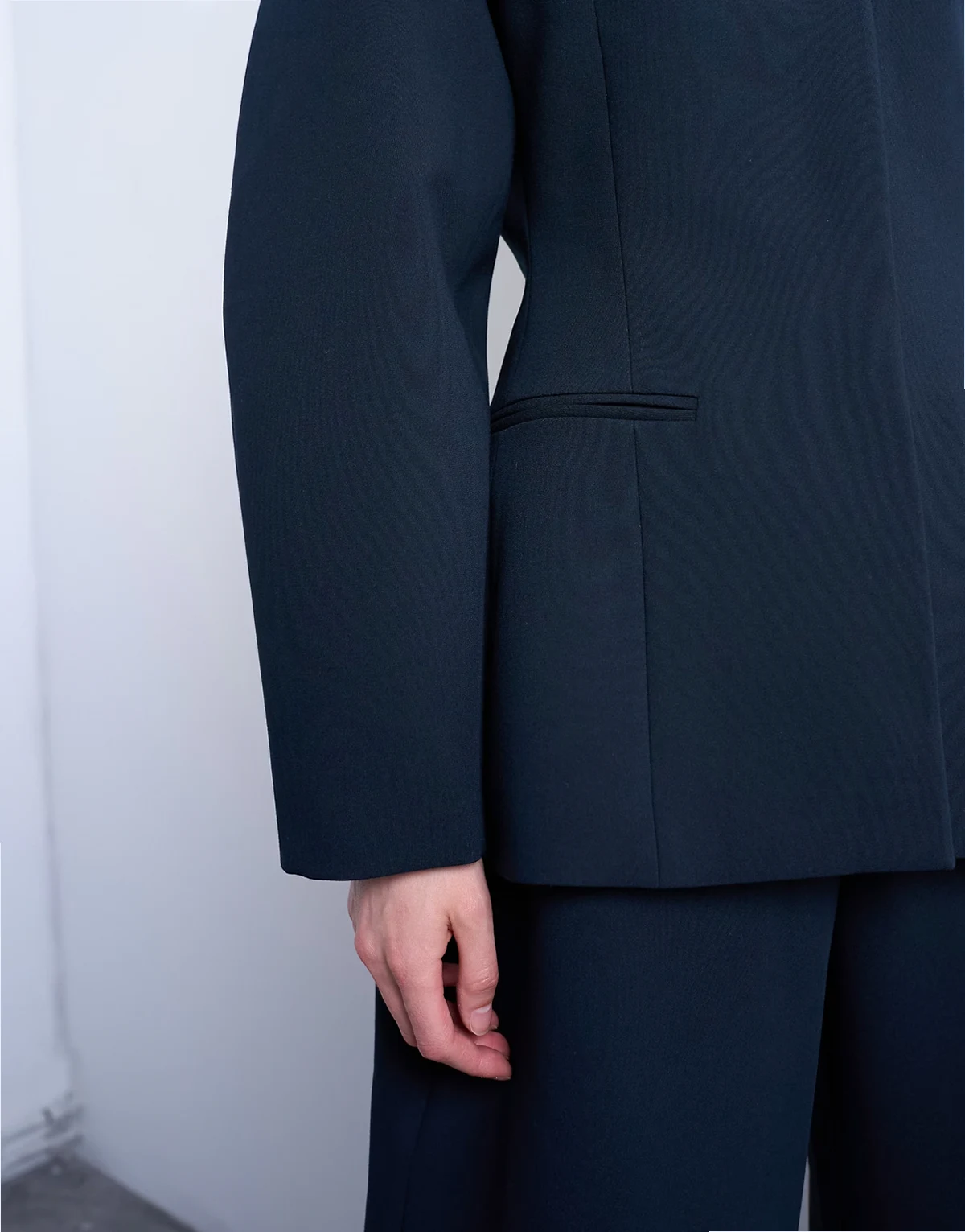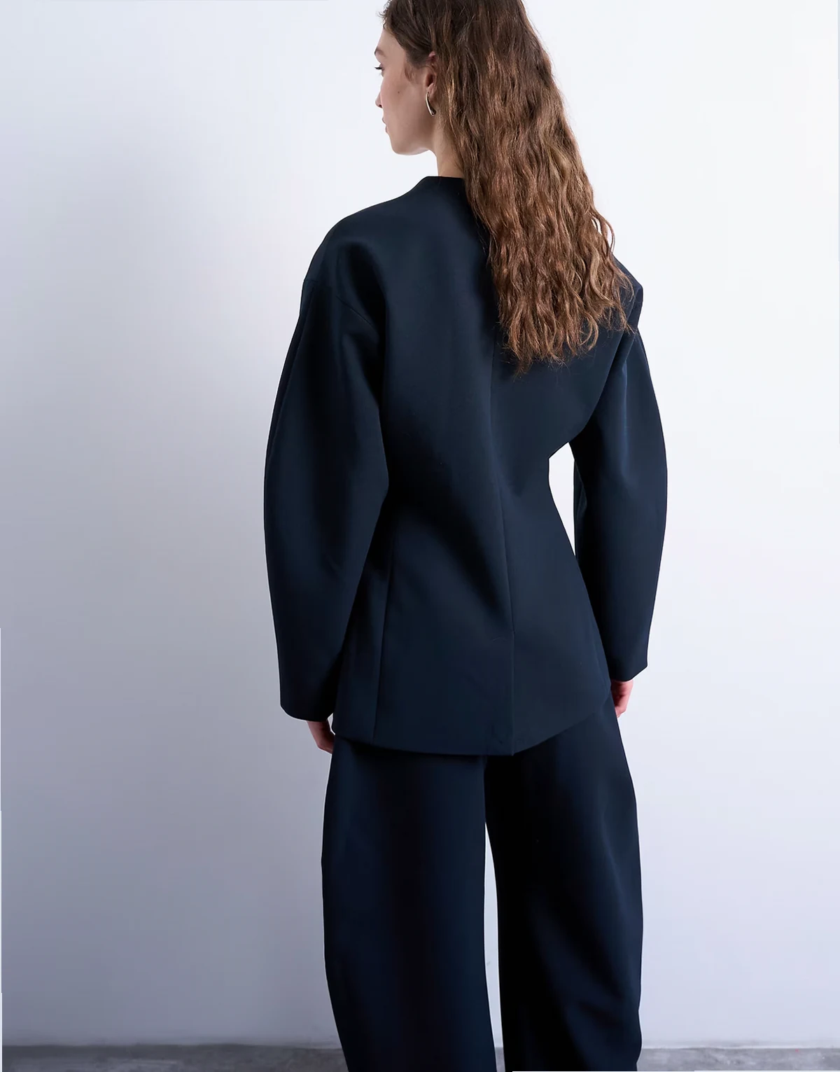 Topshop collarless structured blazer in navy