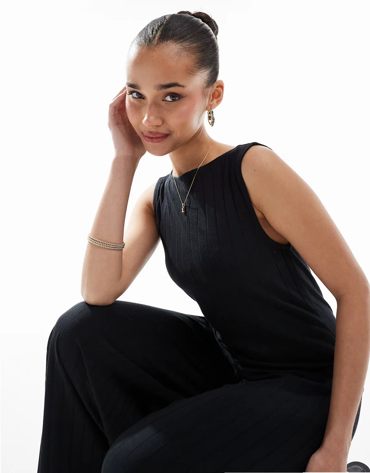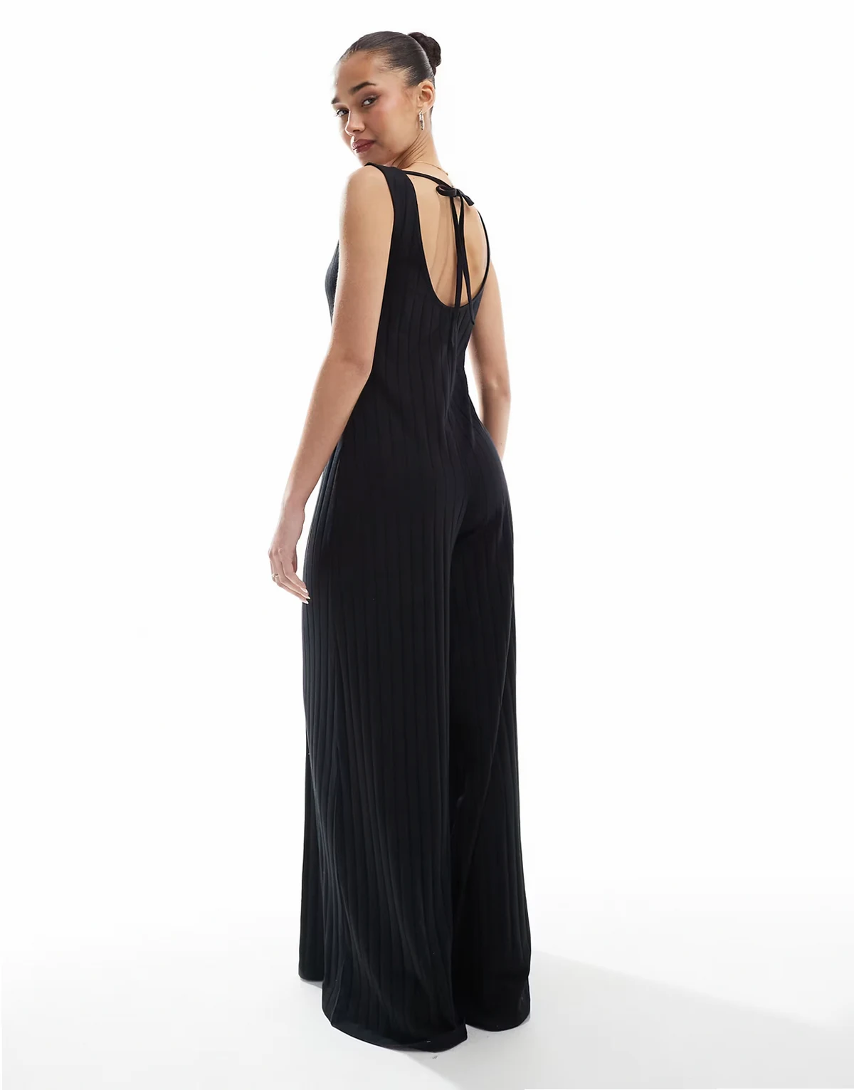 ASOS DESIGN sleeveless wide rib jumpsuit in black