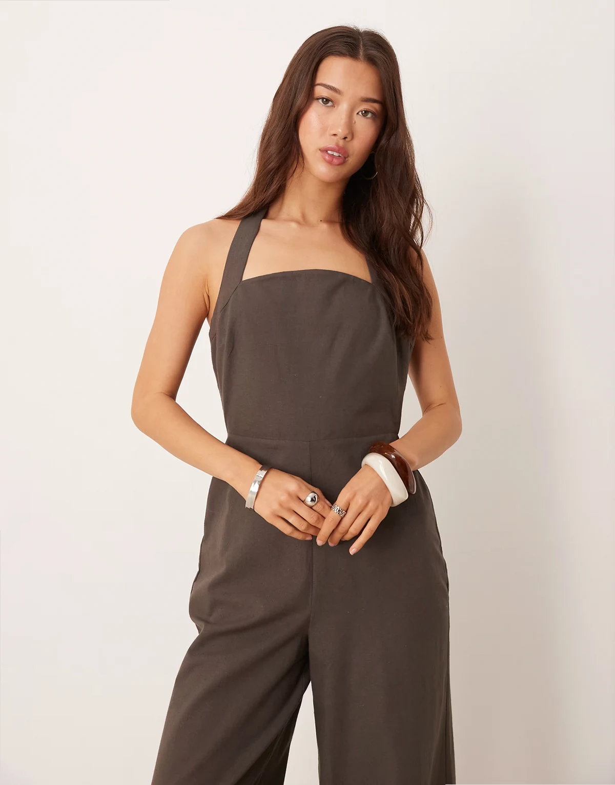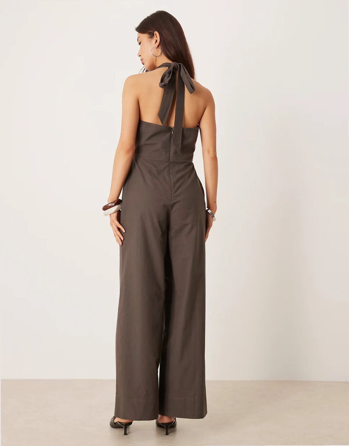 ASOS DESIGN halter neck jumpsuit in chocolate