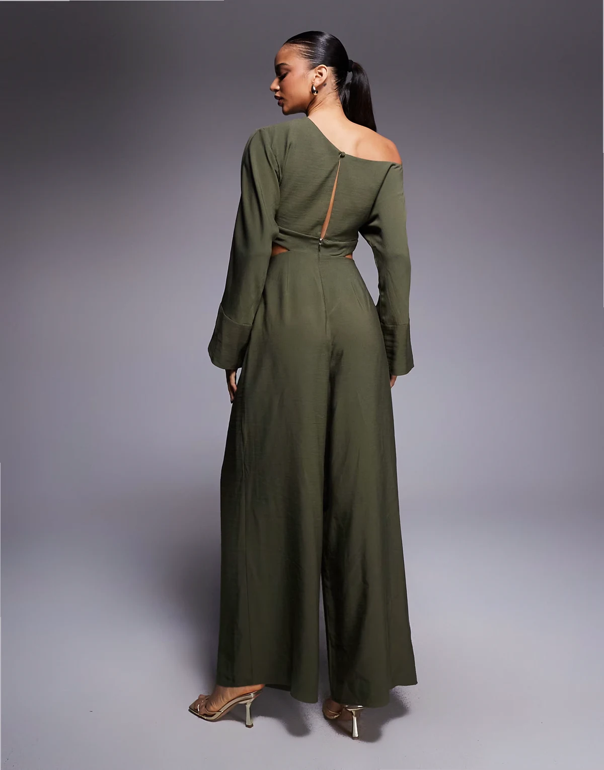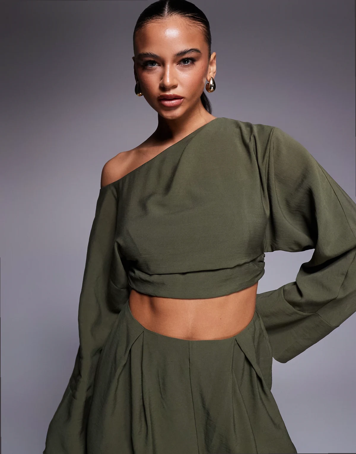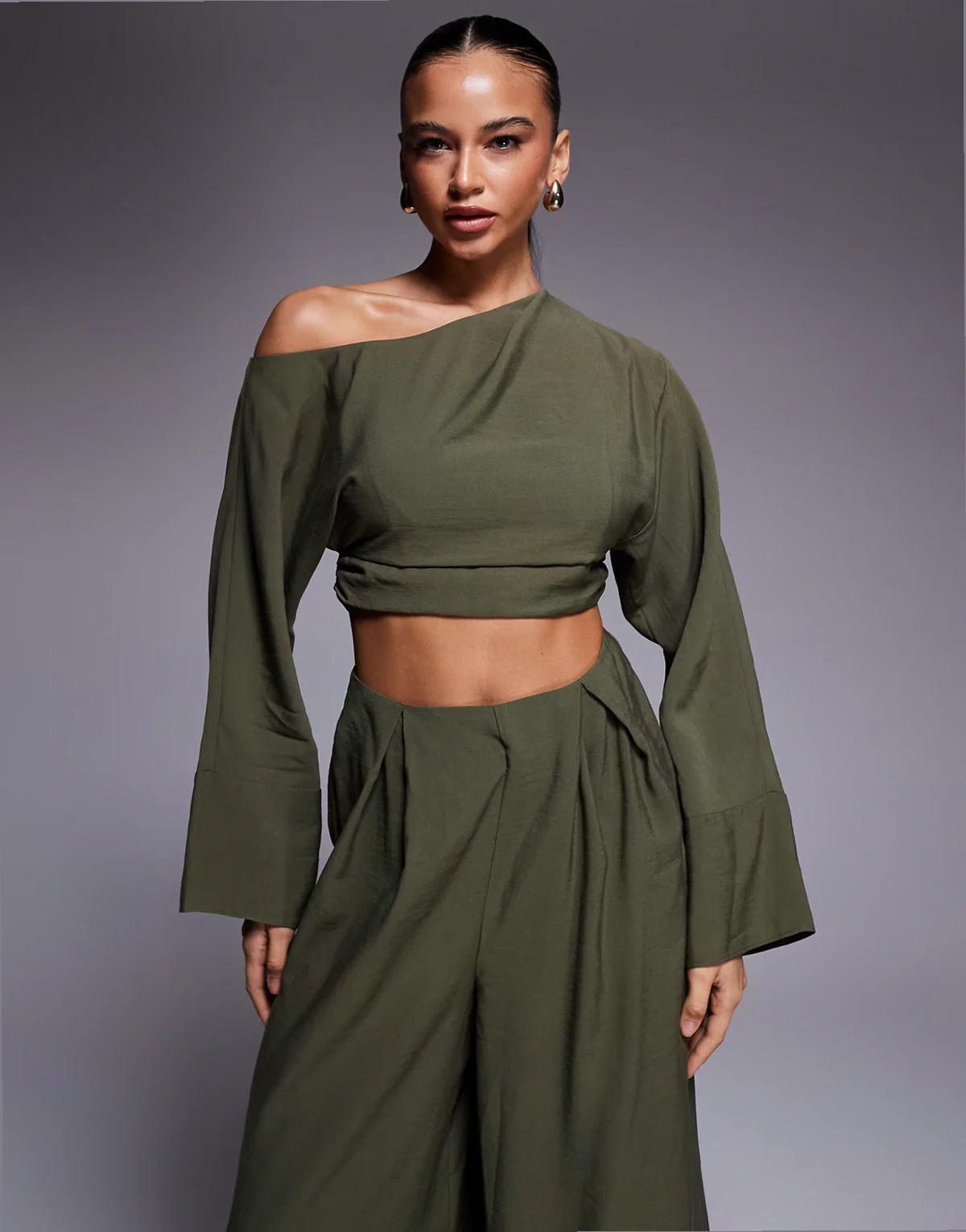 ASOS DESIGN fallen shoulder faux set jumpsuit in khaki