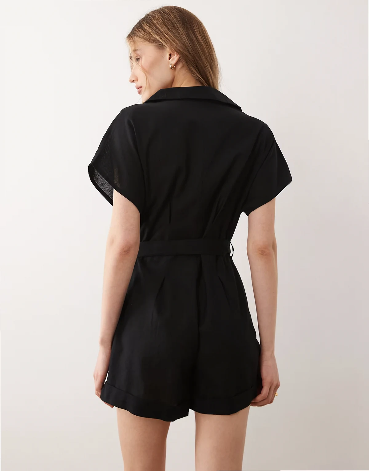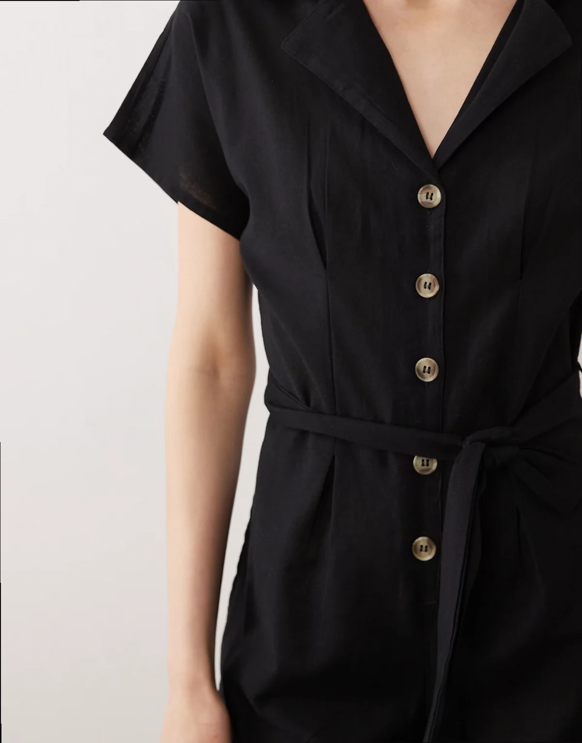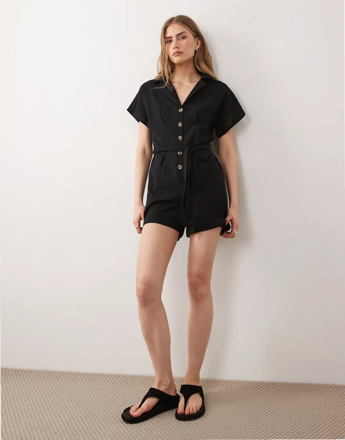 Wednesday's Girl button tie linen mix romper in black
