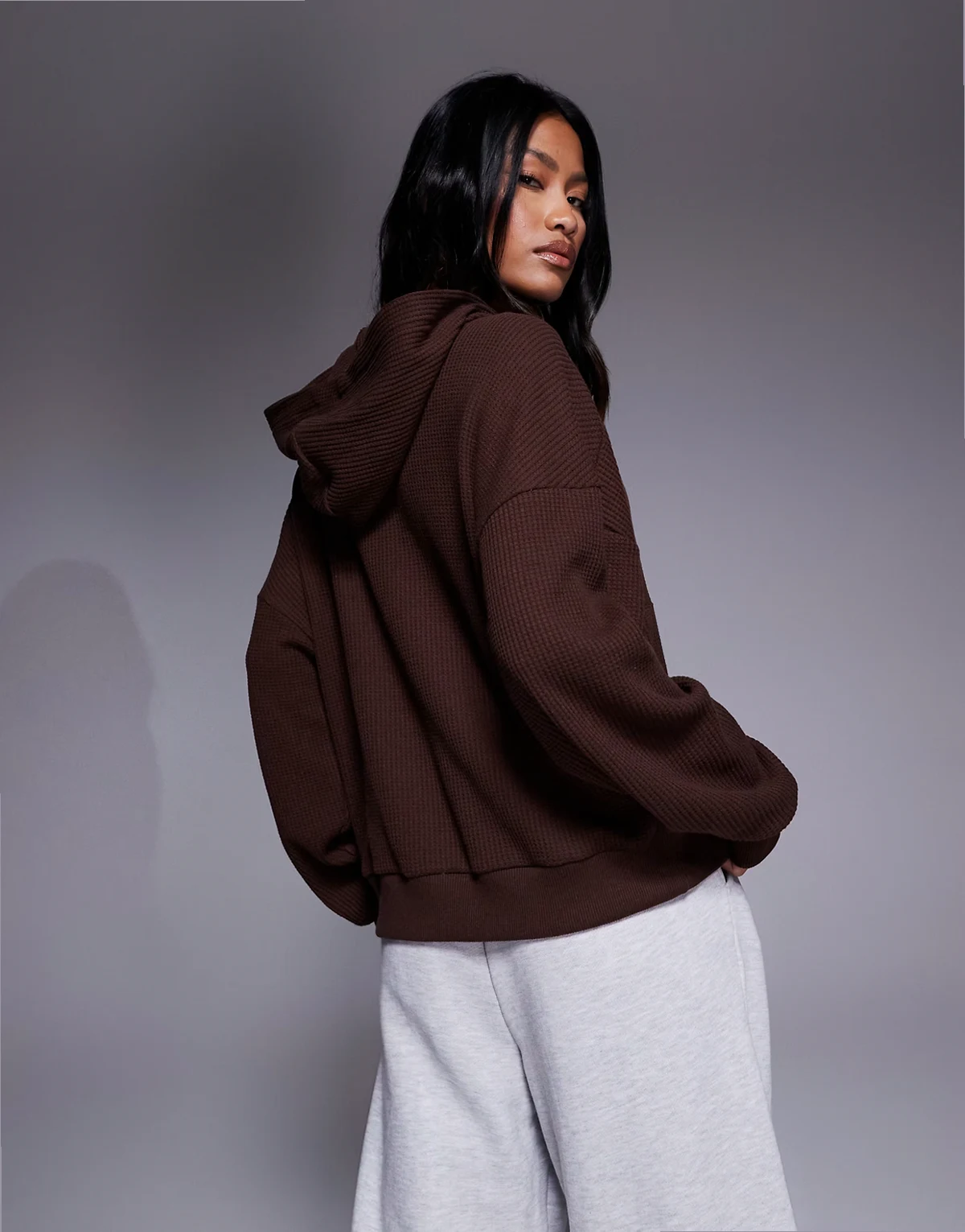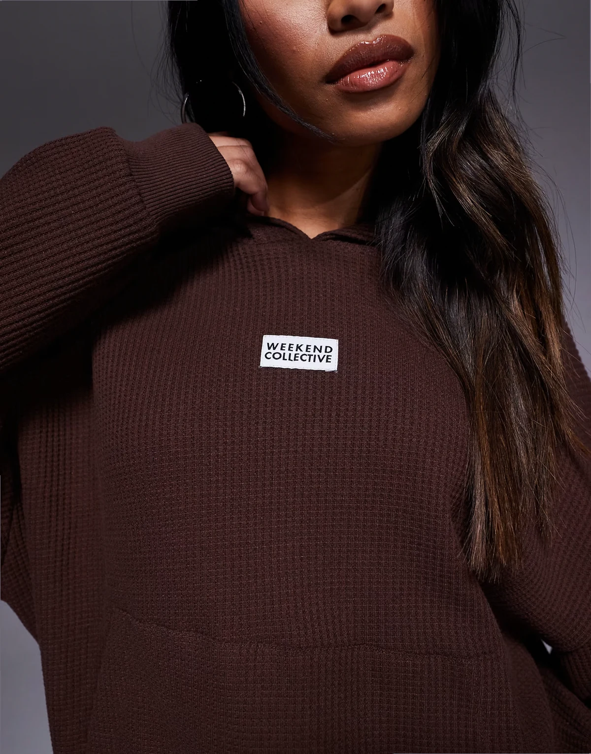 ASOS Weekend Collective Weekend Collective heavyweight waffle hoodie in chocolate