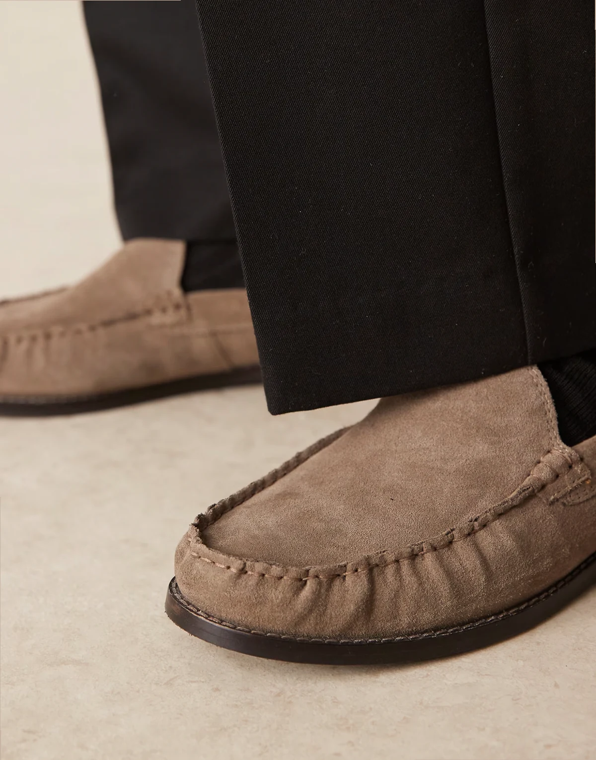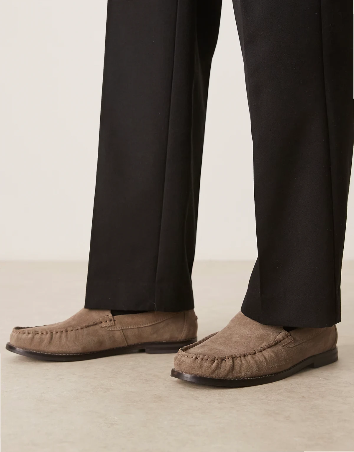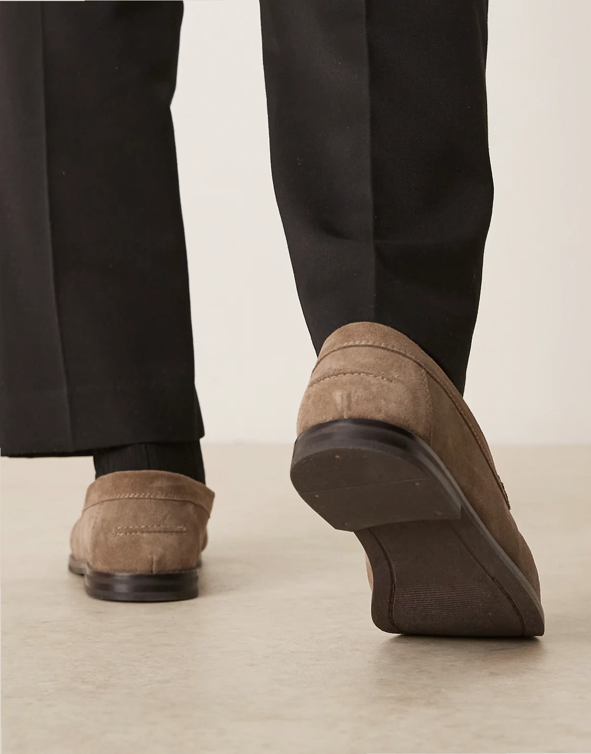 ASOS DESIGN penny loafers in stone suede with ruching
