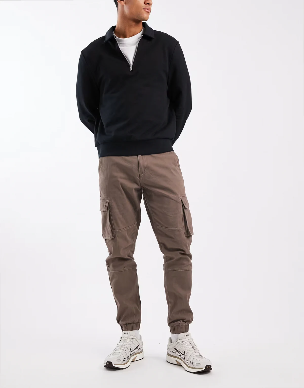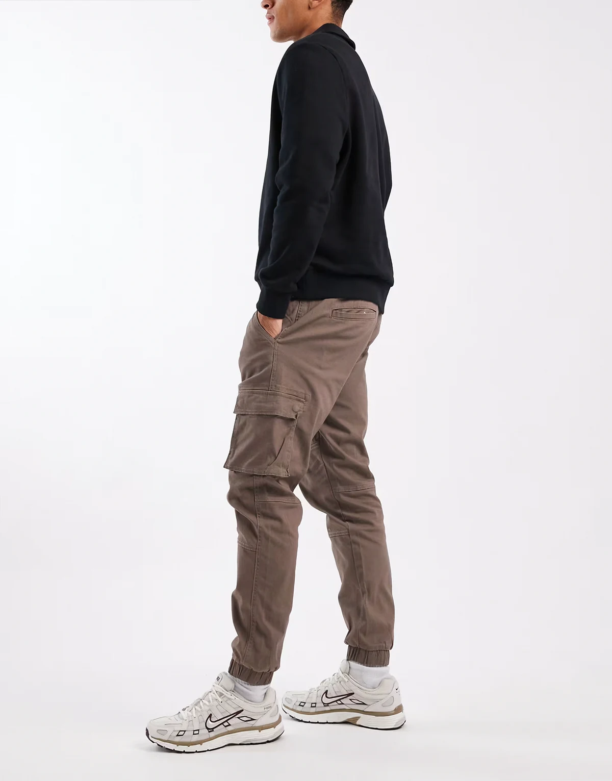 ONLY & SONS tapered cuffed cargo pants in light brown