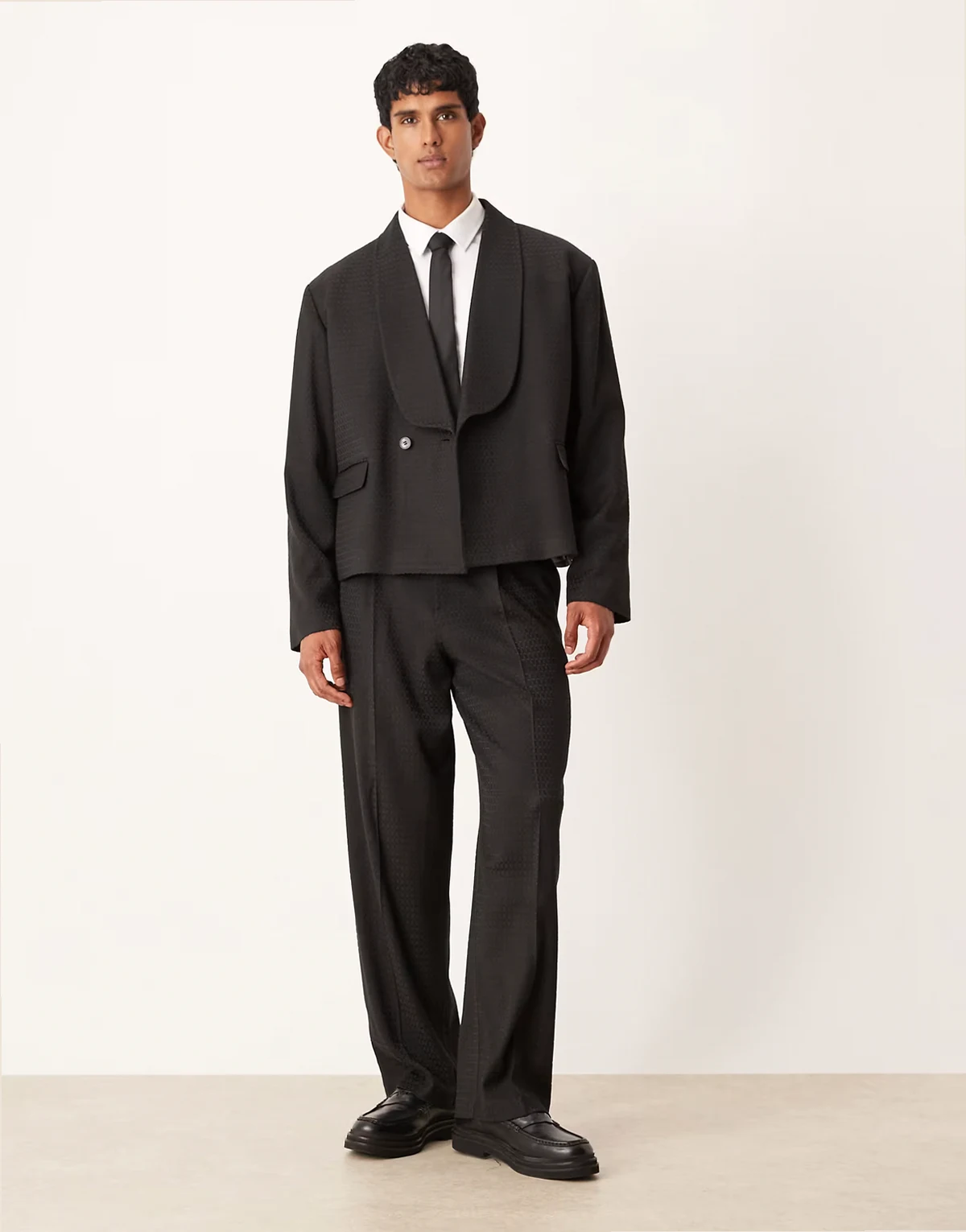 ASOS DESIGN boxy suit jacket in black jacquard