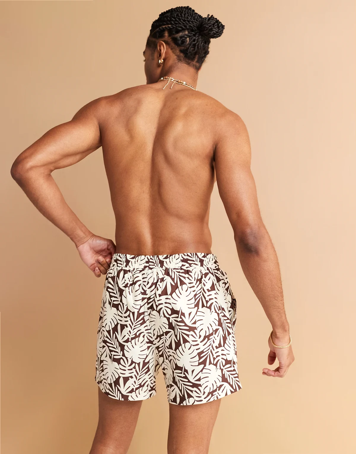 South Beach palm tree print swim shorts in brown