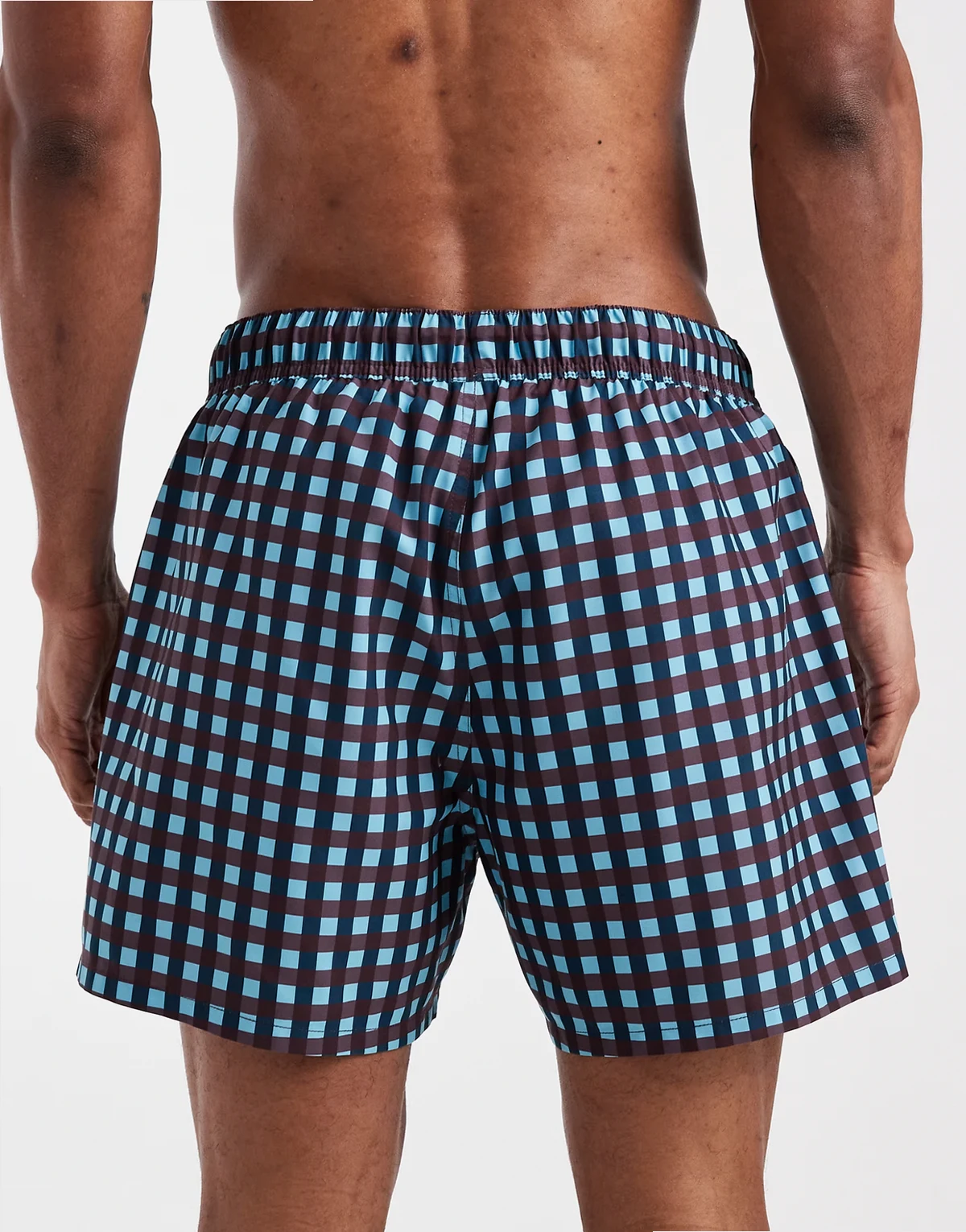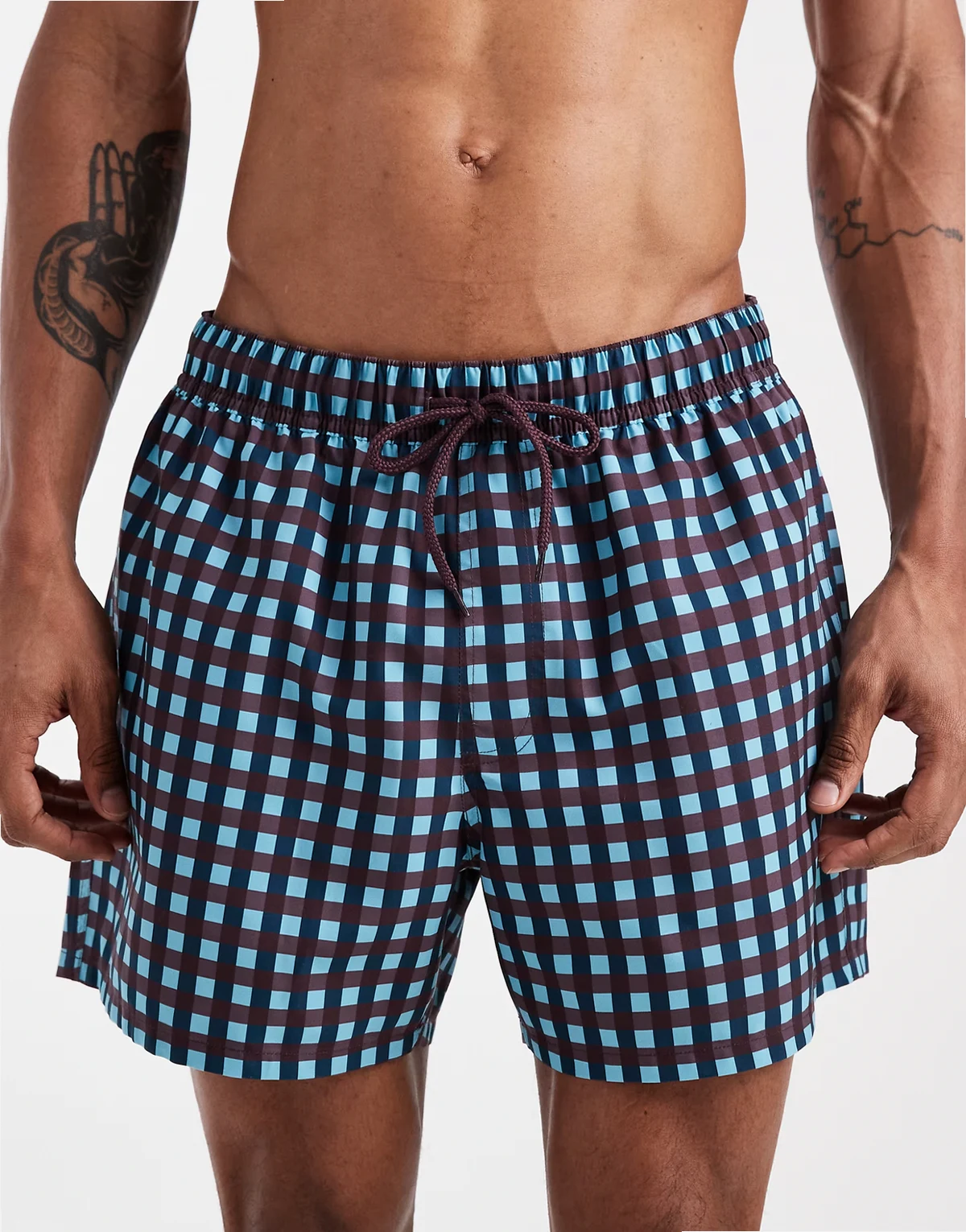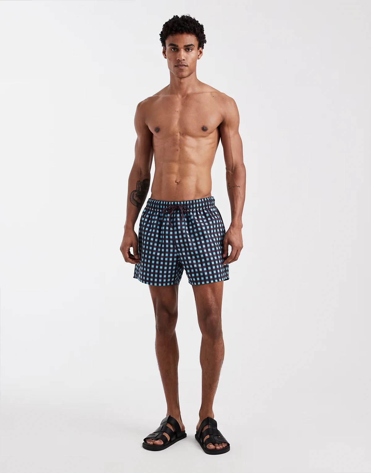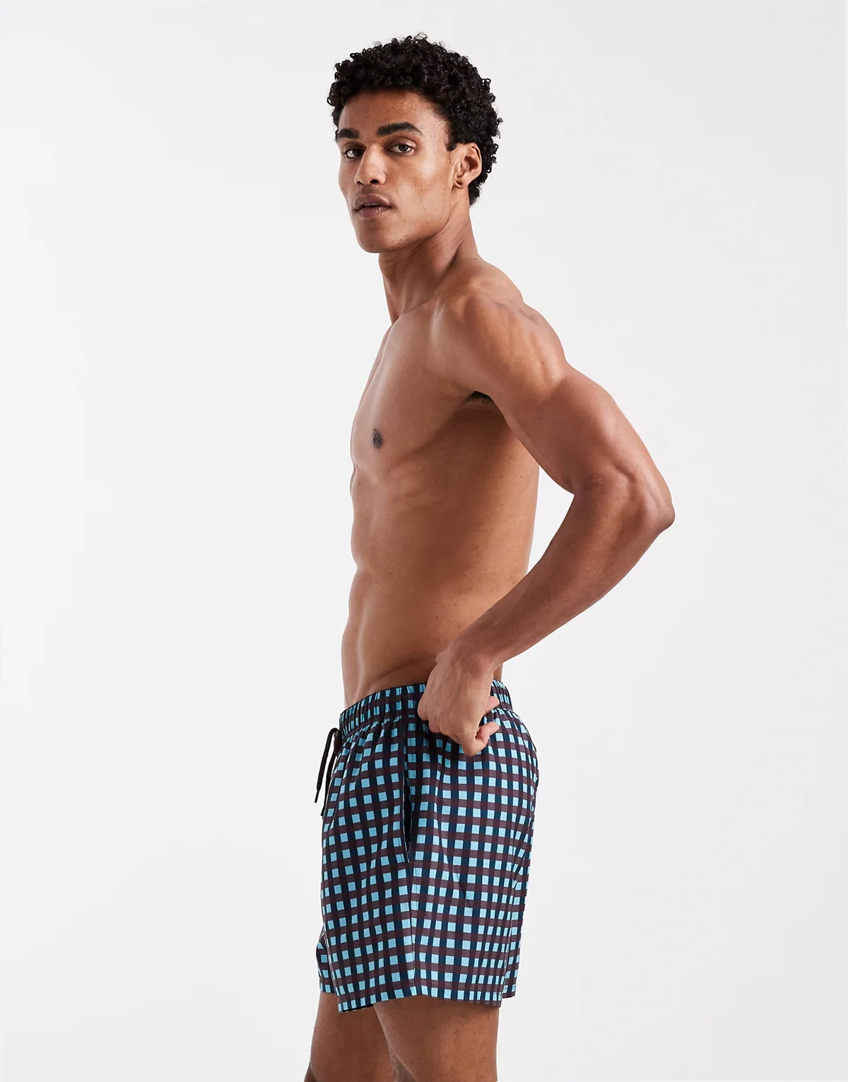 ASOS DESIGN short length gingham swim shorts in turquoise