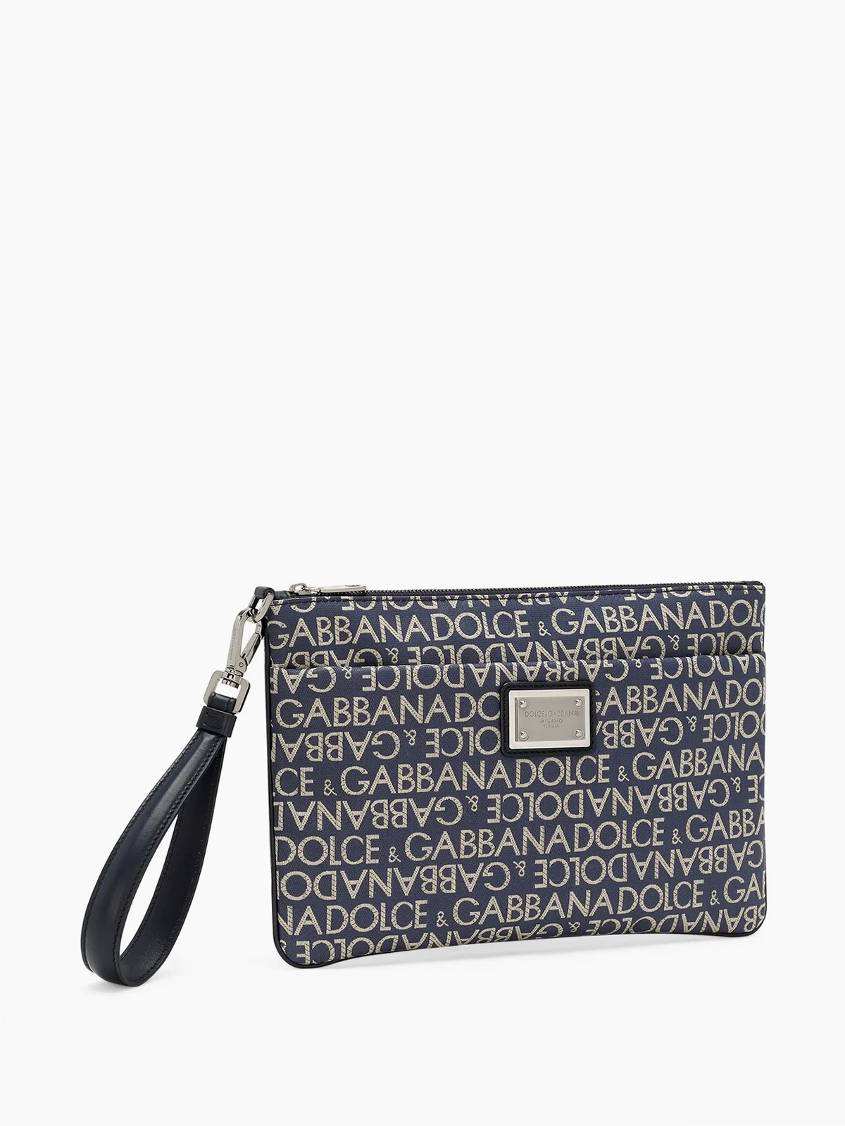 Dolce & Gabbana logo-plaque jacquard-logo clutch bag