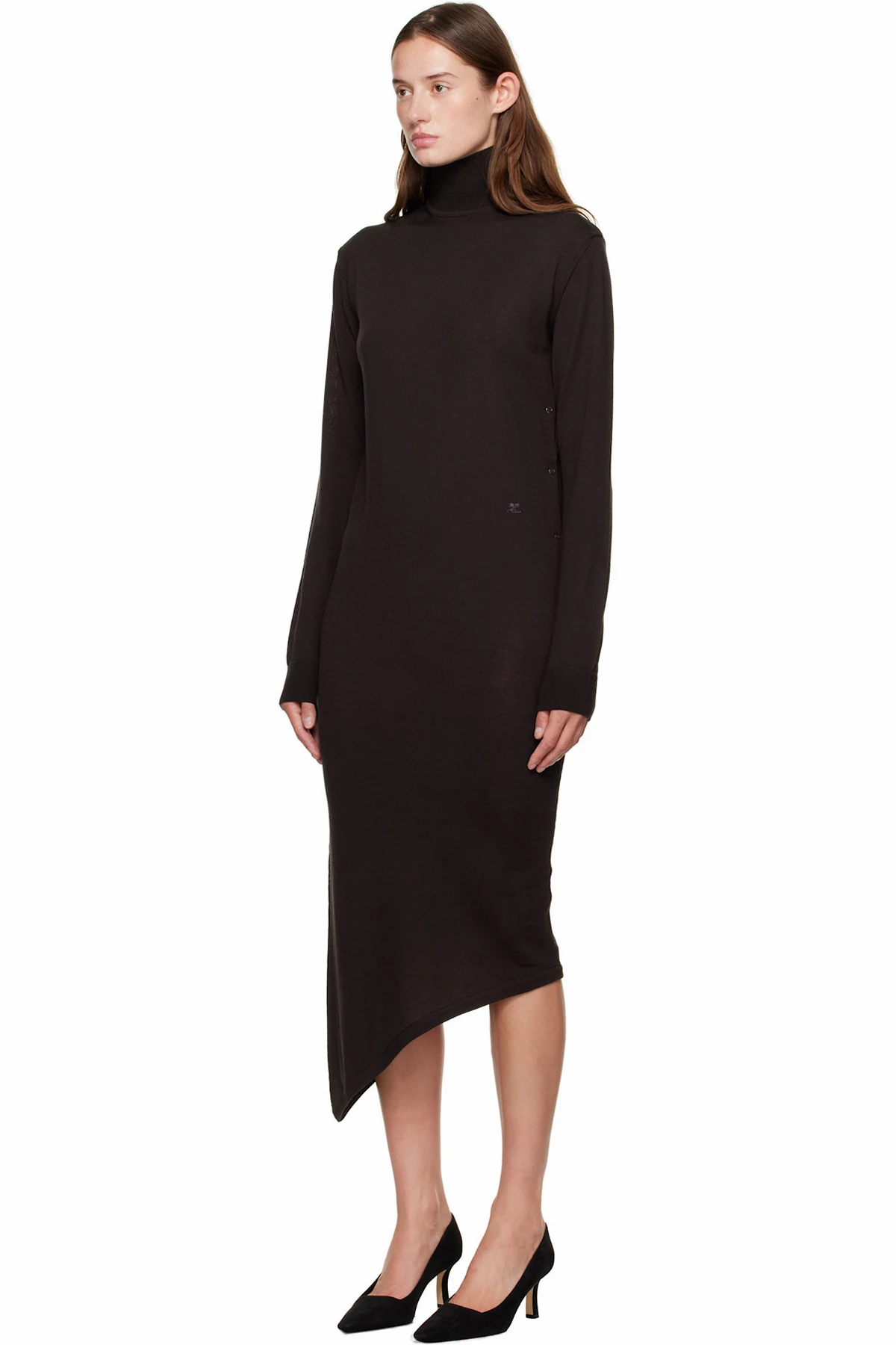 Courrèges Brown Off-Shoulder Wool Minidress