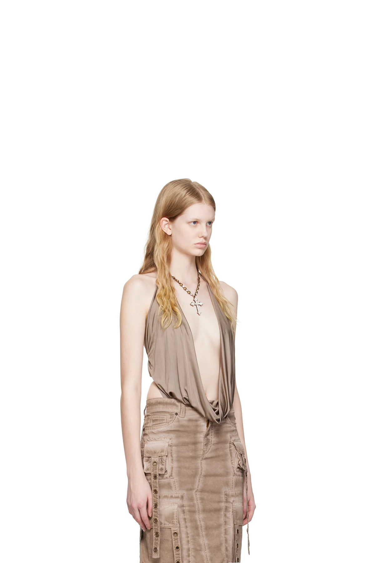 Blumarine Brown Plunging Bodysuit