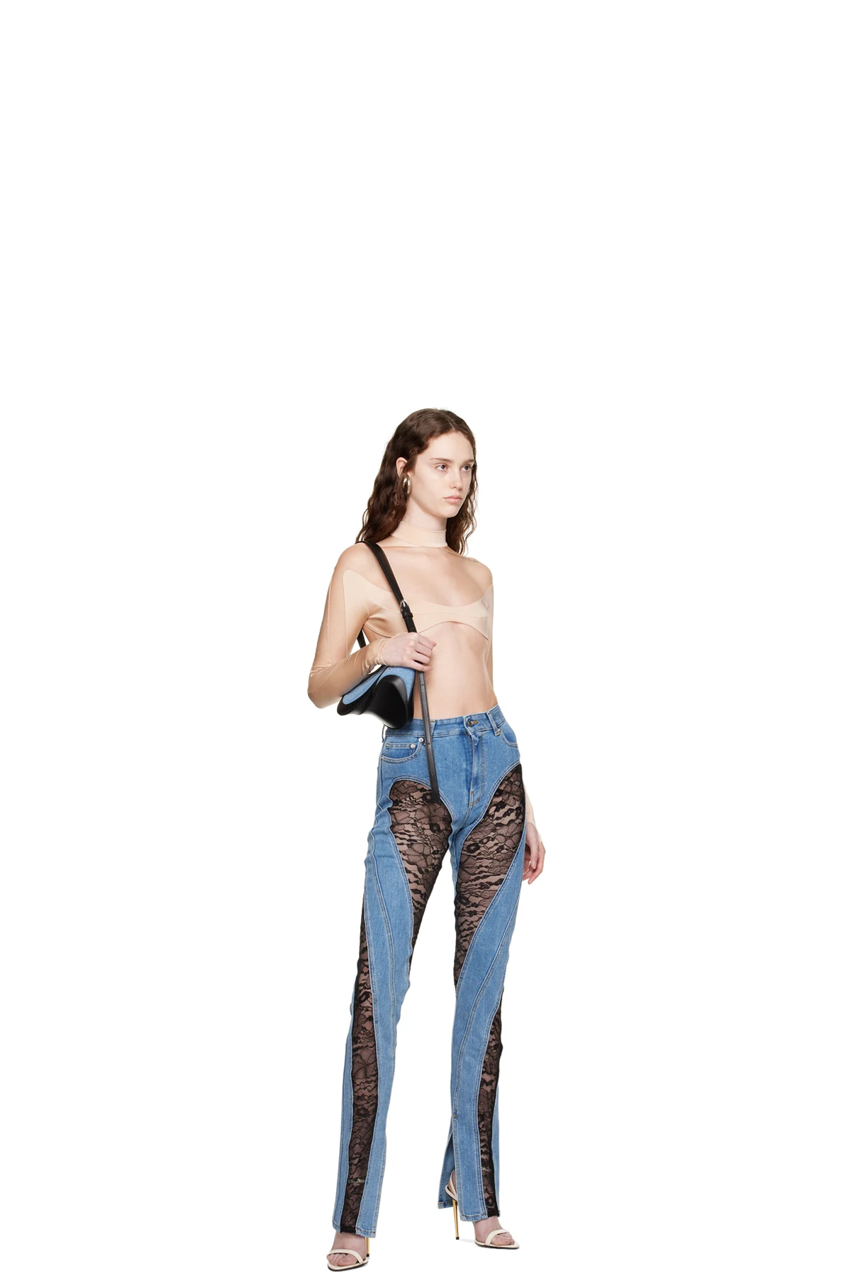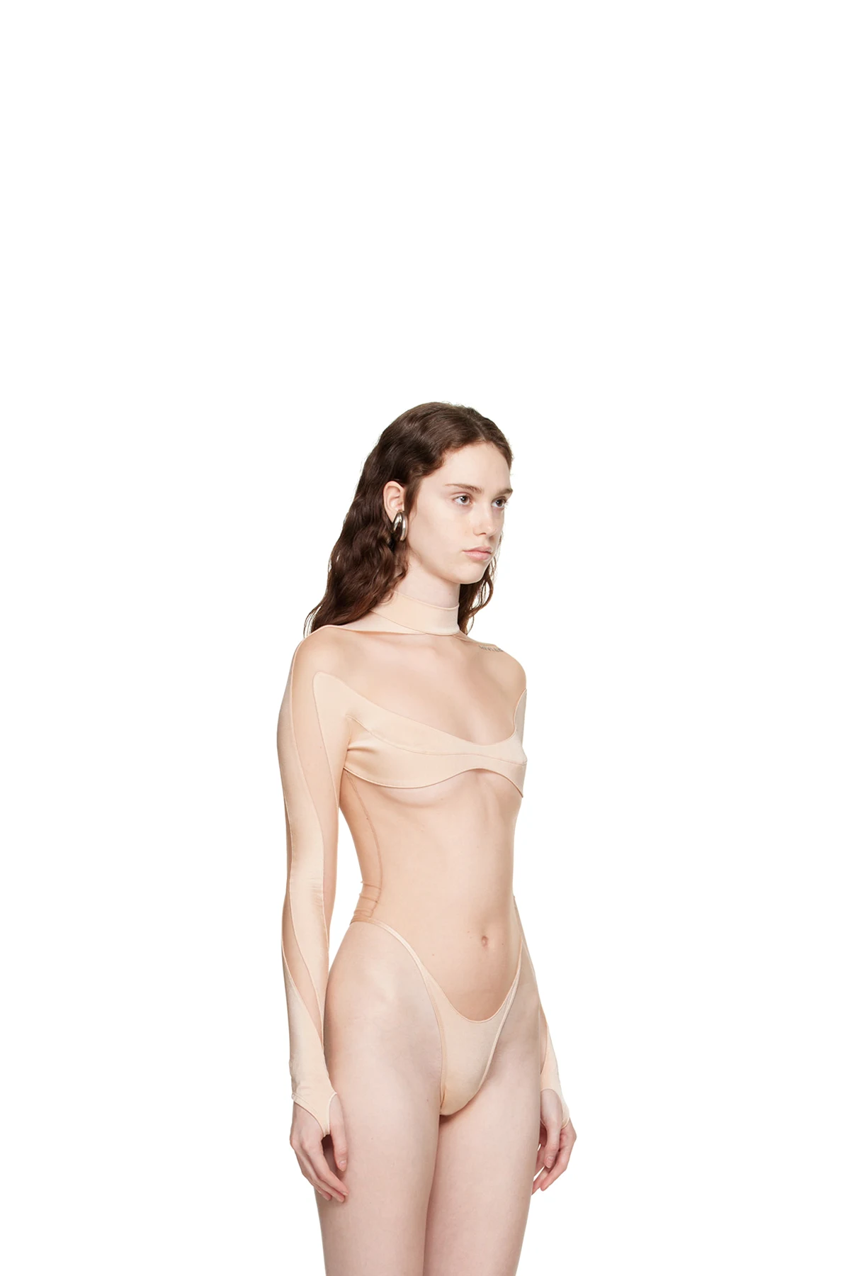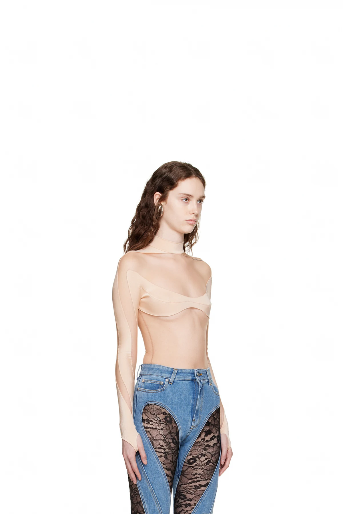 Mugler Beige Paneled Bodysuit