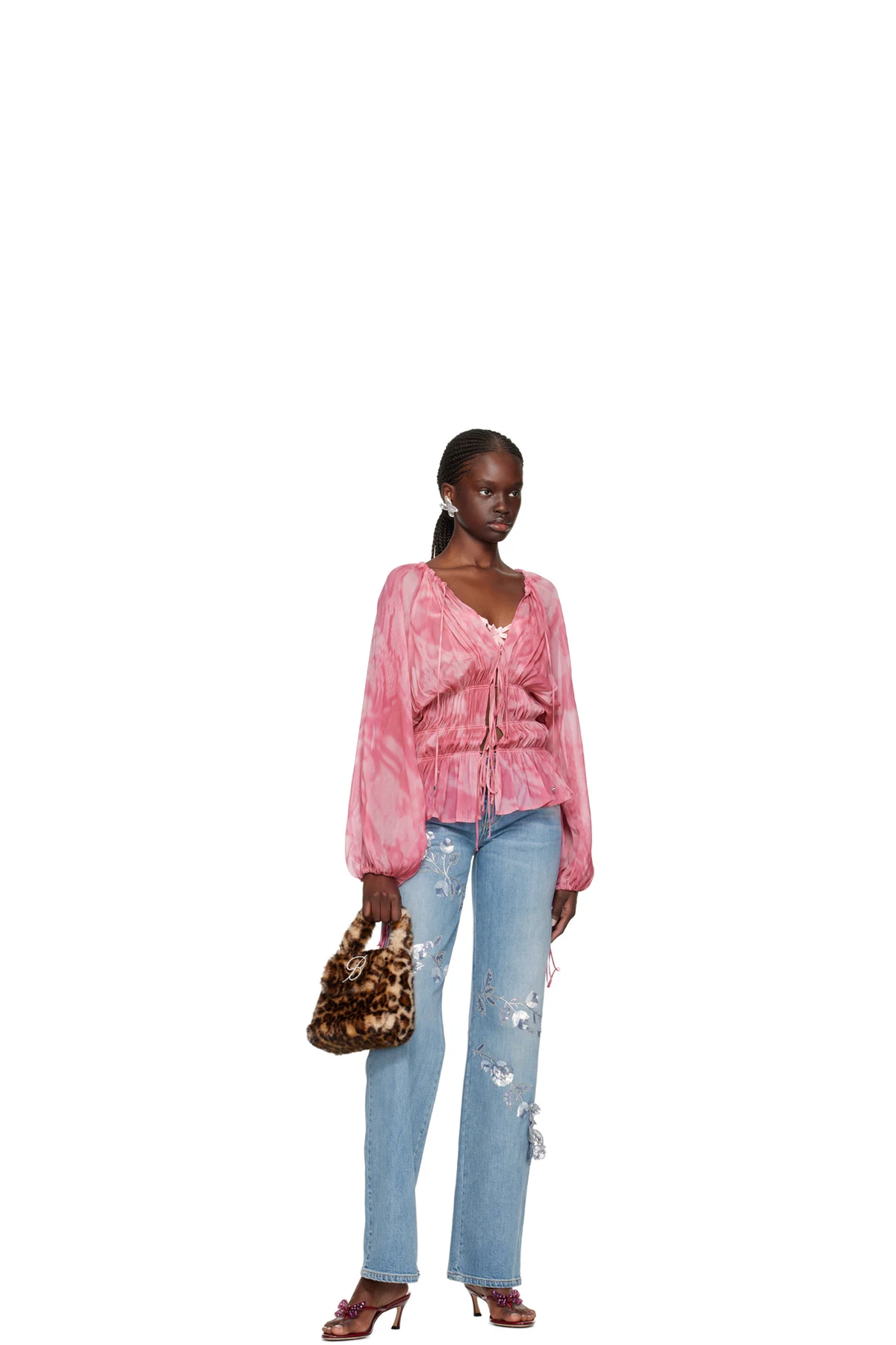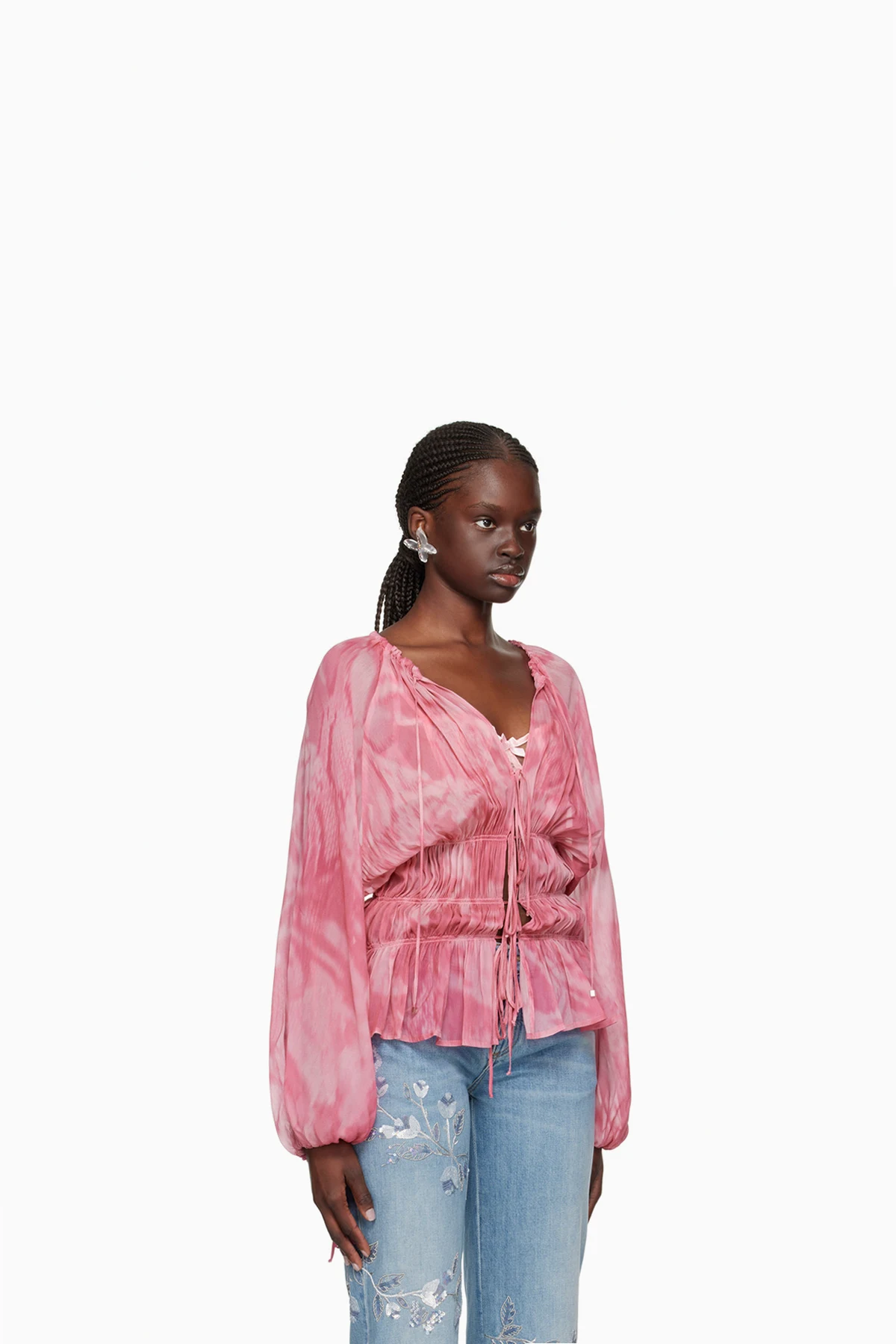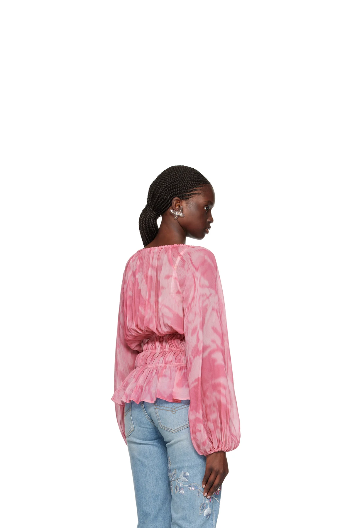 Semi-sheer viscose georgette blouse. Graphic pattern throughout.