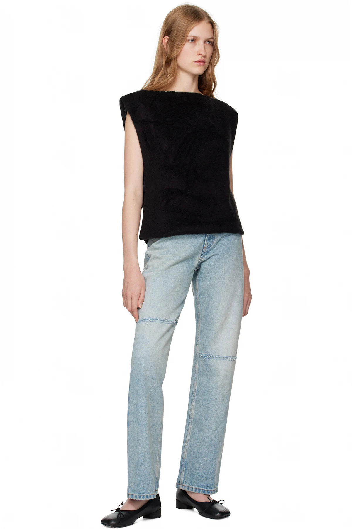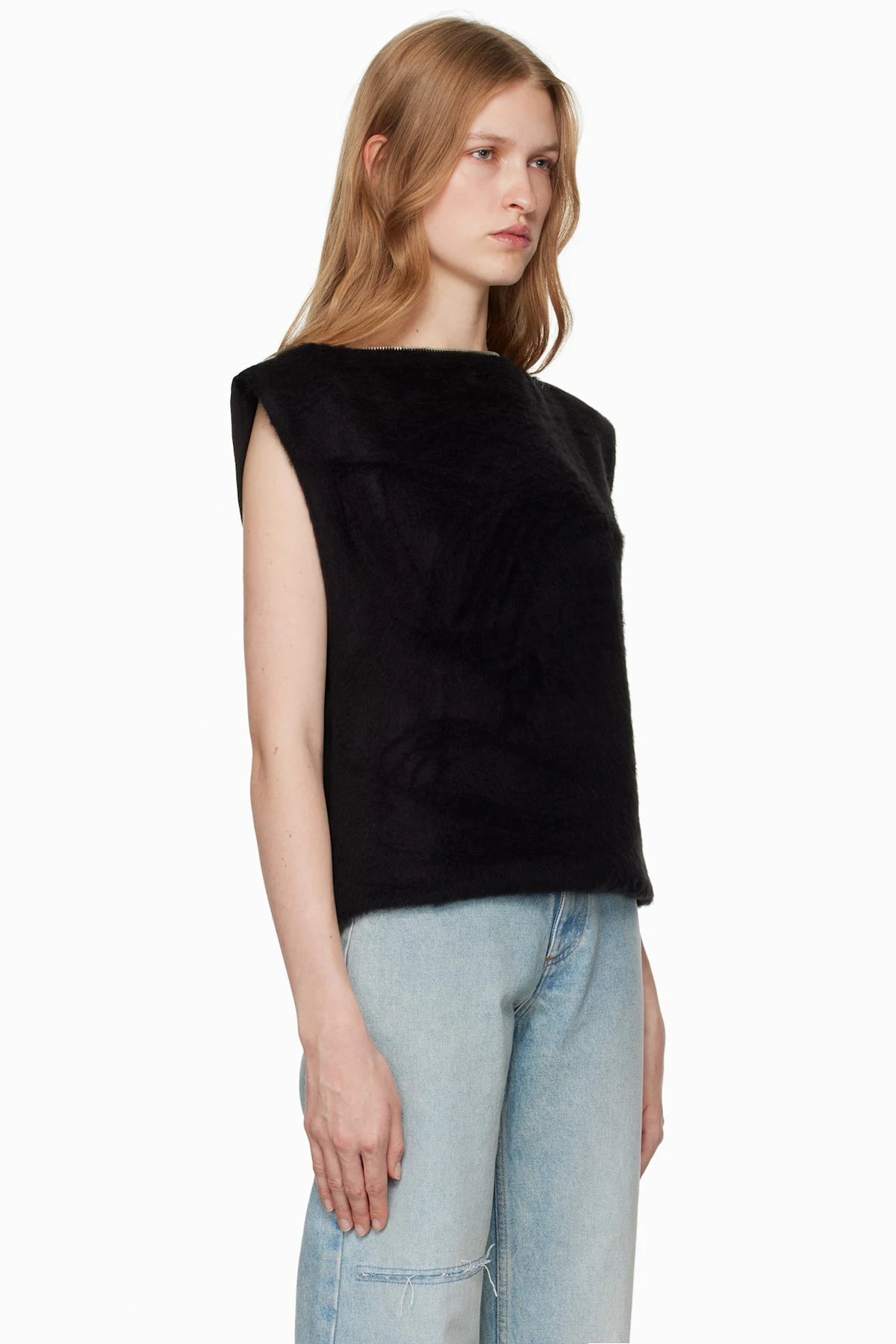 MM6 Maison Margiela Black Furry Fleece & Cotton Jersey Blouse