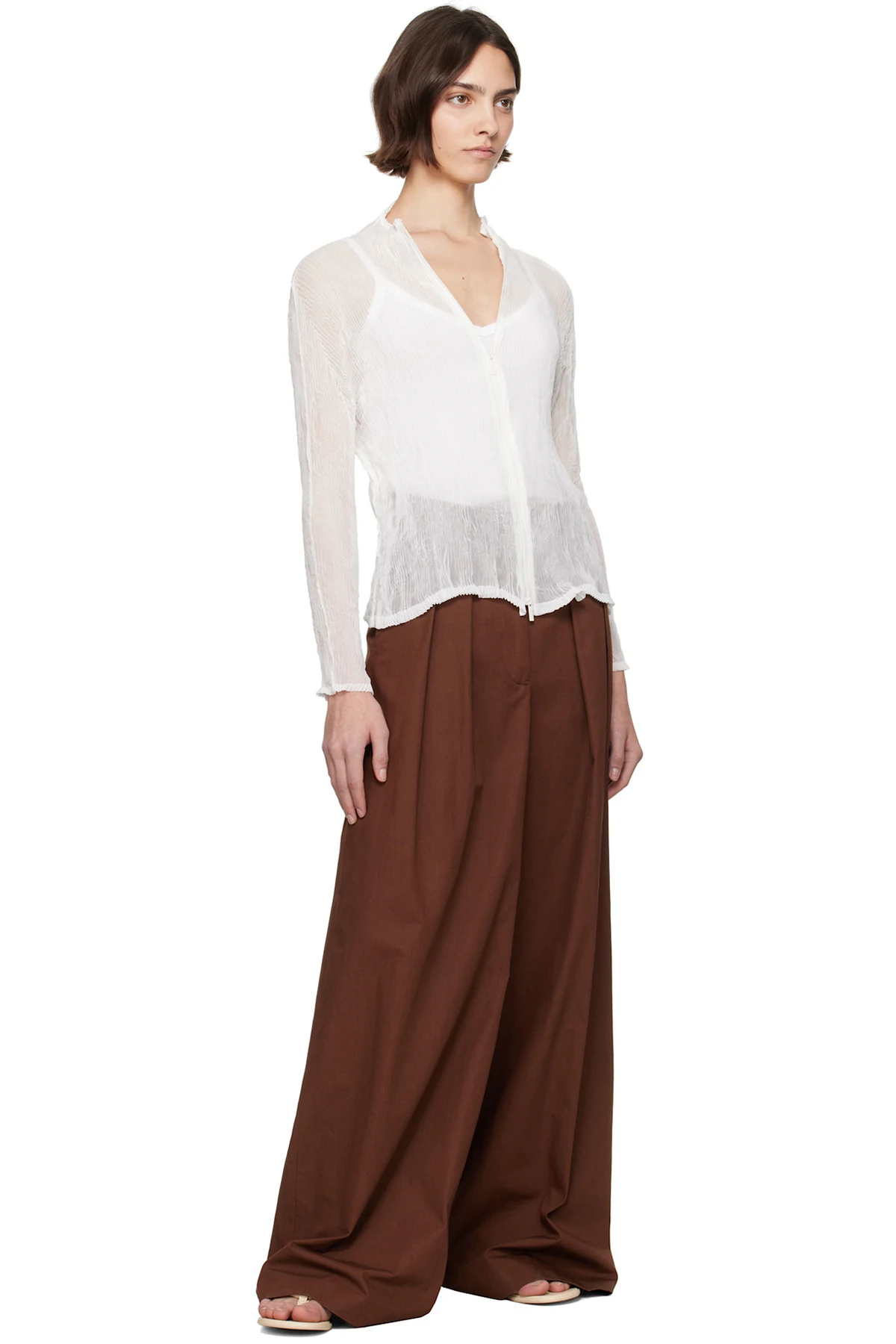 Sheer garment-pleated recycled polyester chiffon blouse.