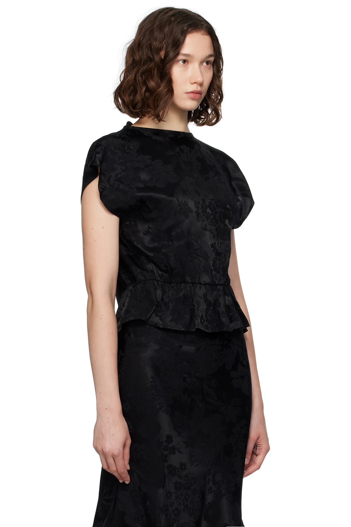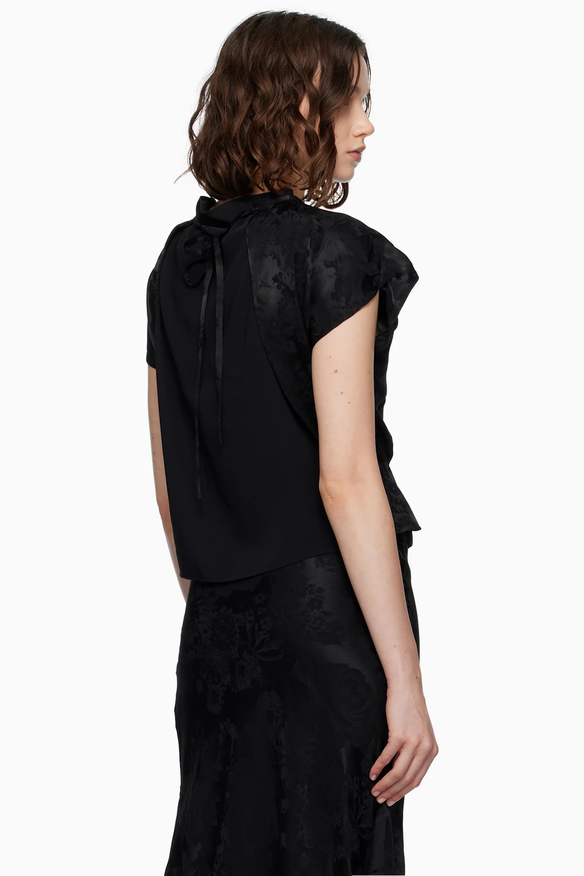Viscose-blend brocade and crêpe blouse.
