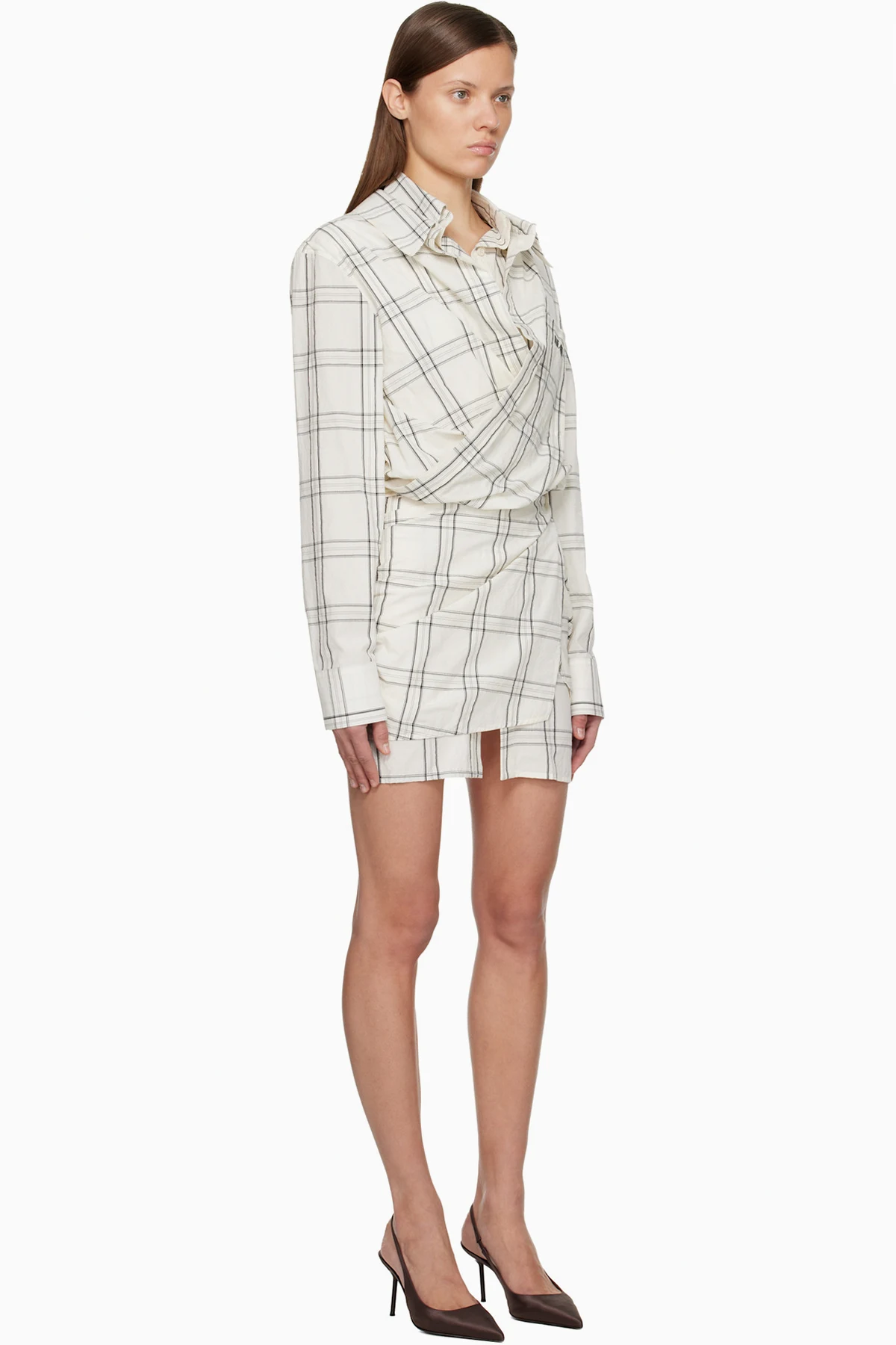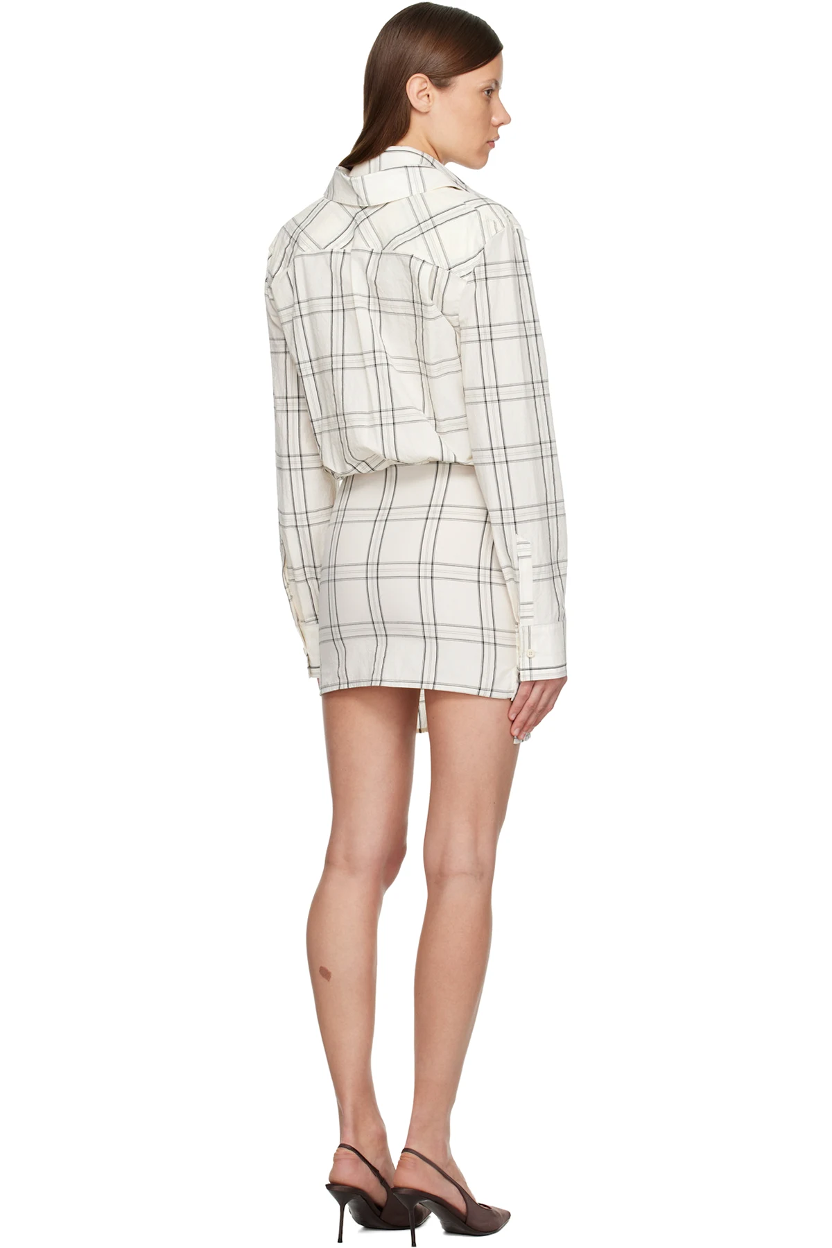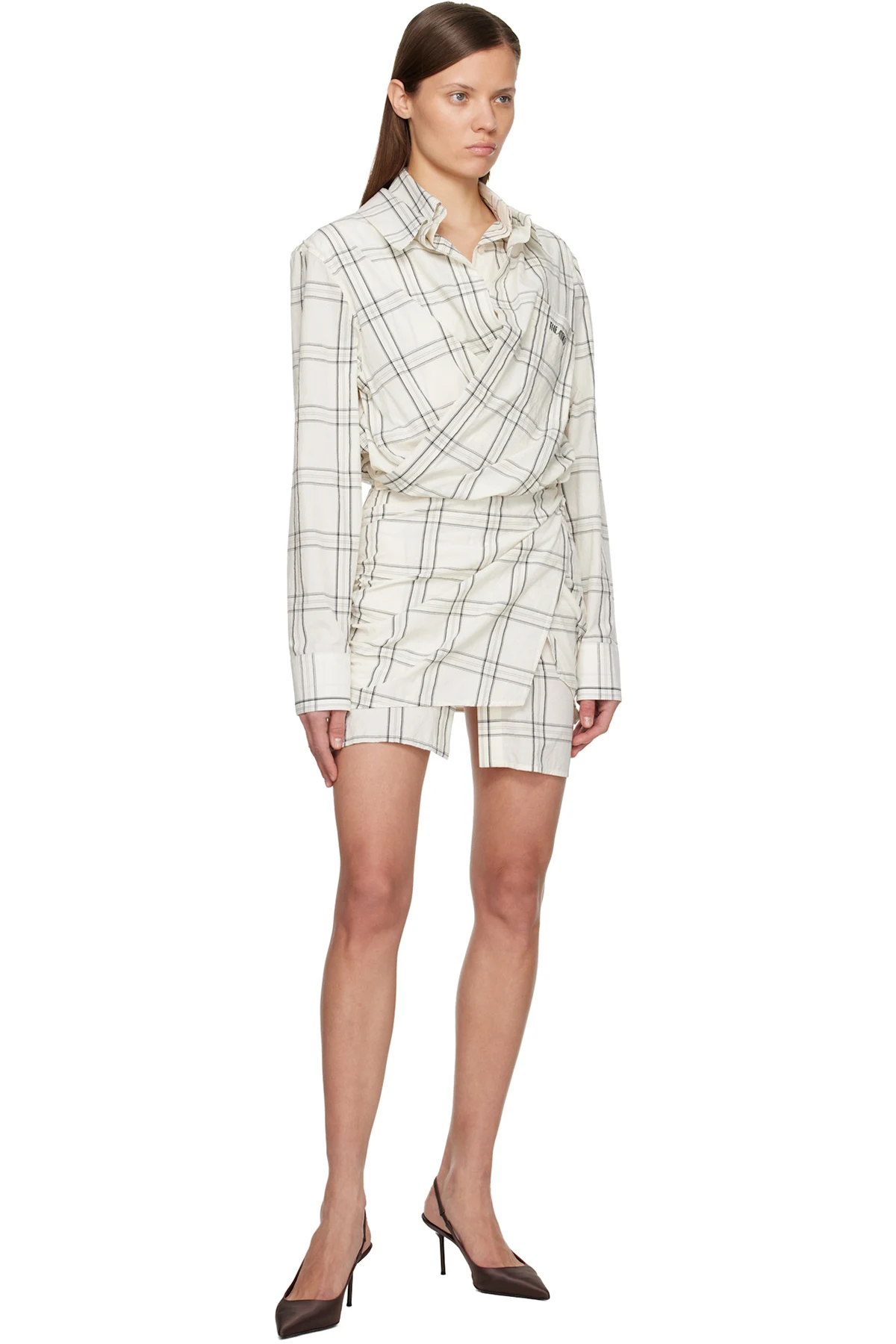 The Attico White Cotton Popeline Vichy Minidress