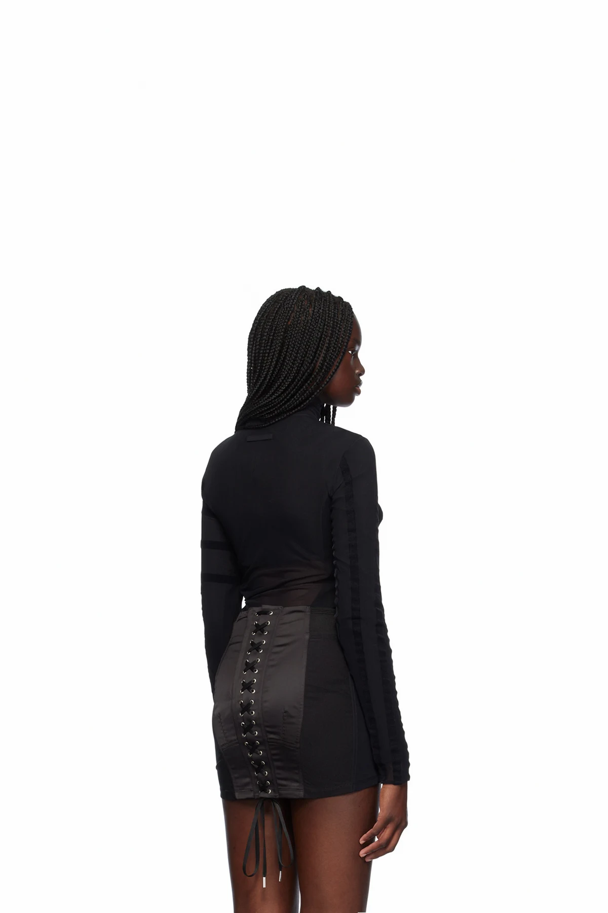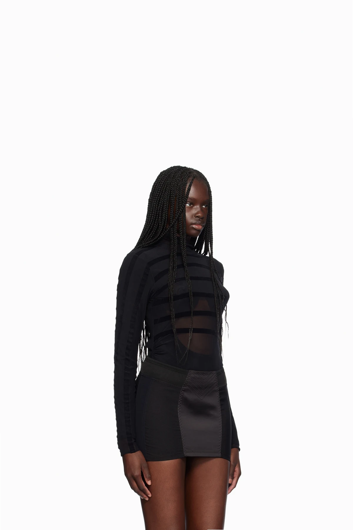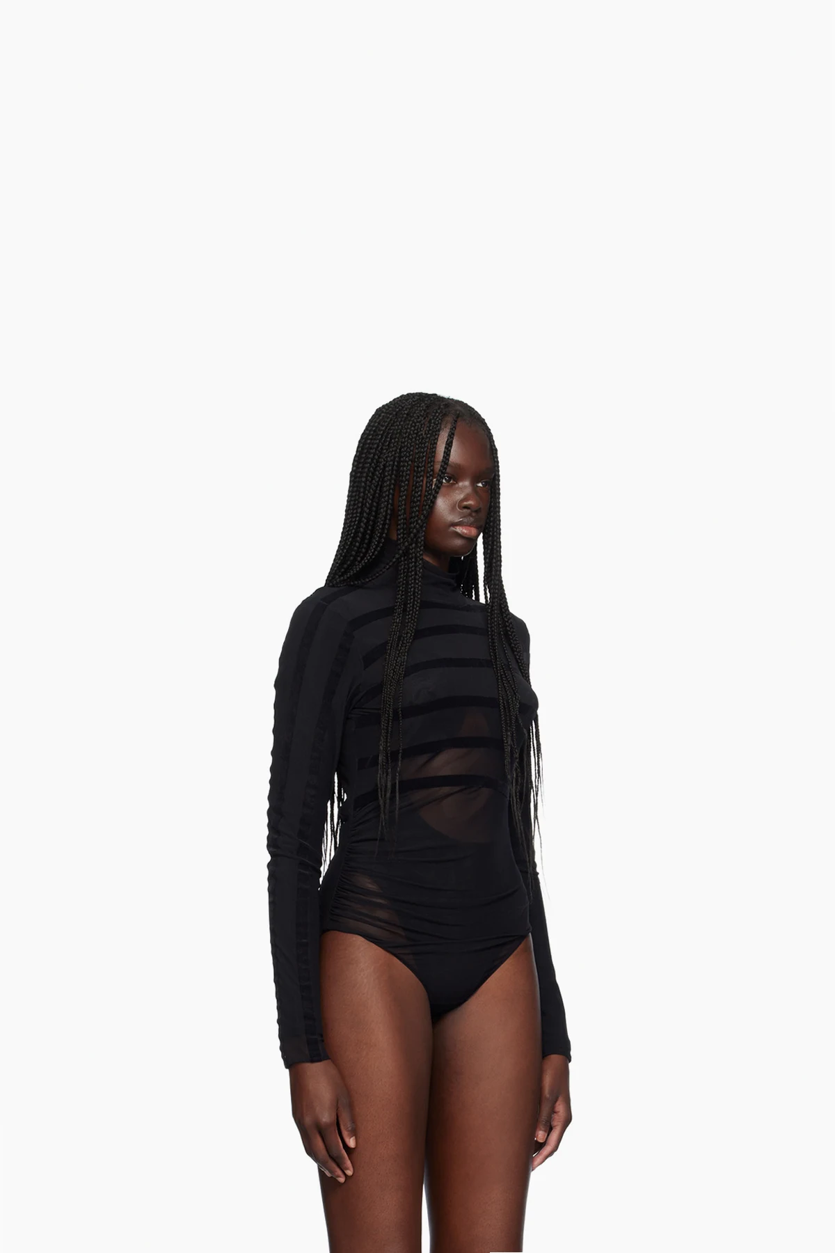 Jean Paul Gaultier Black 'The Striped Flocked' Bodysuit