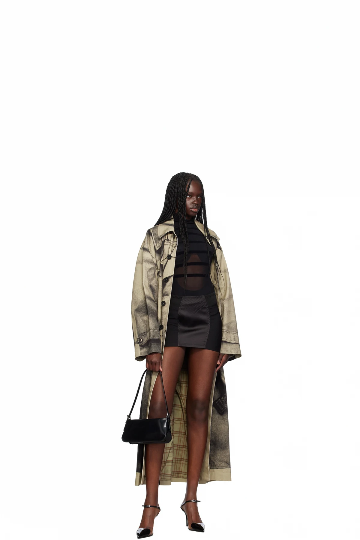 Sheer stretch nylon tulle bodysuit. Flocked stripes throughout.