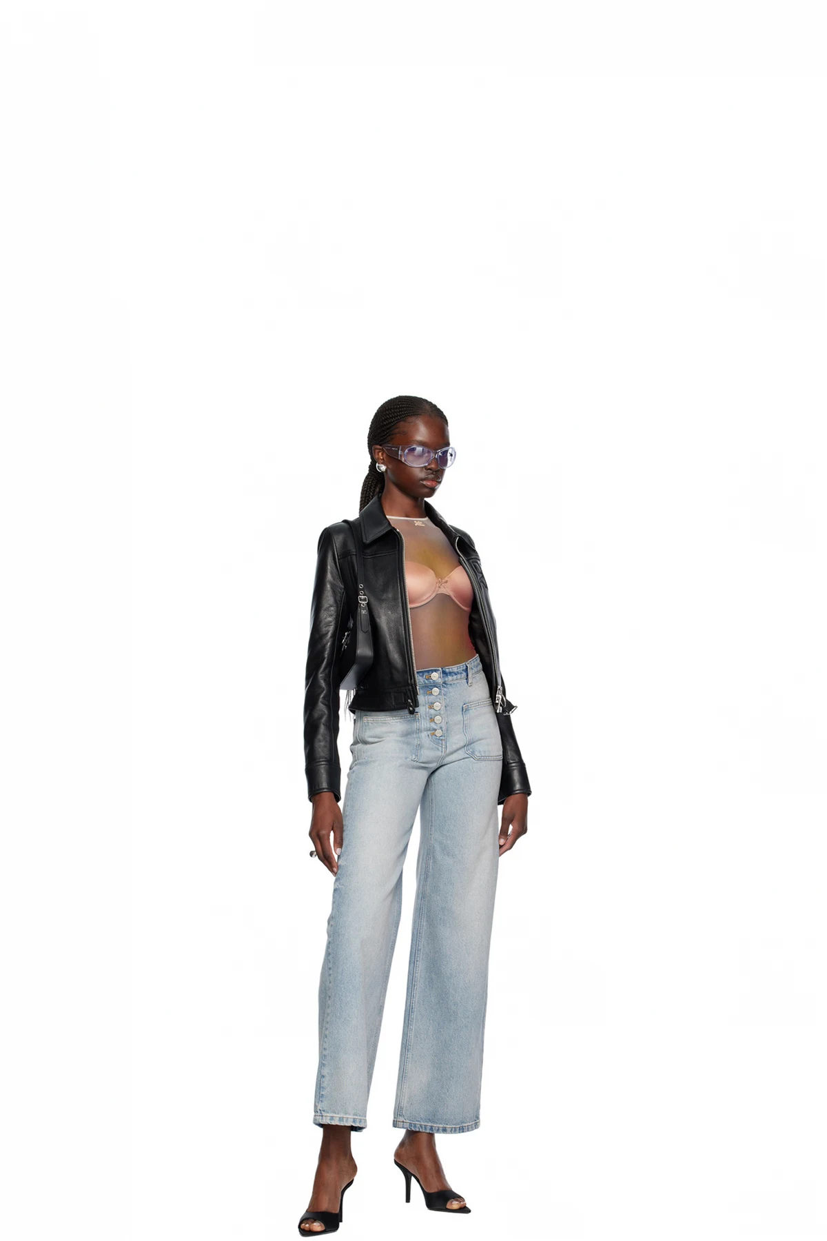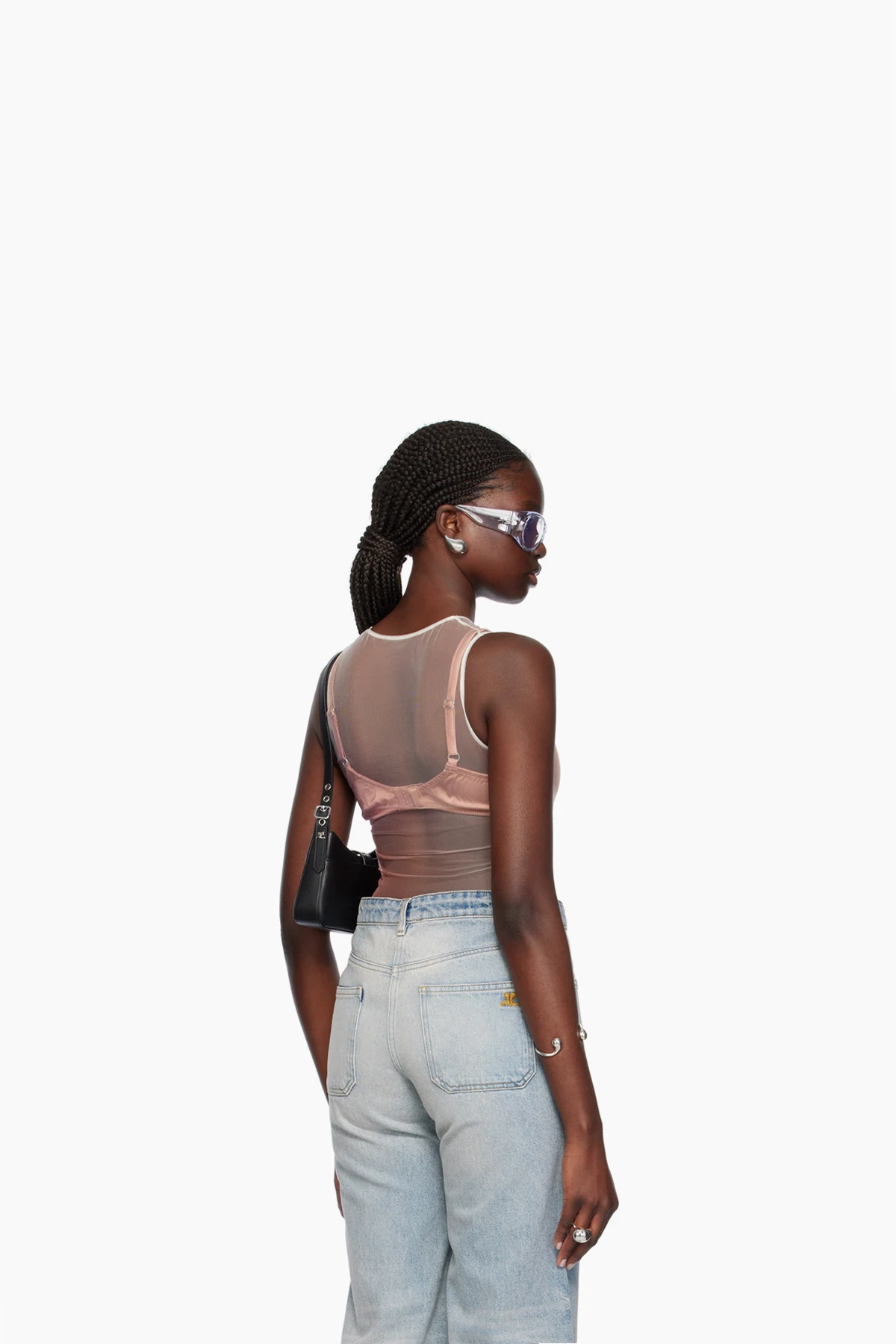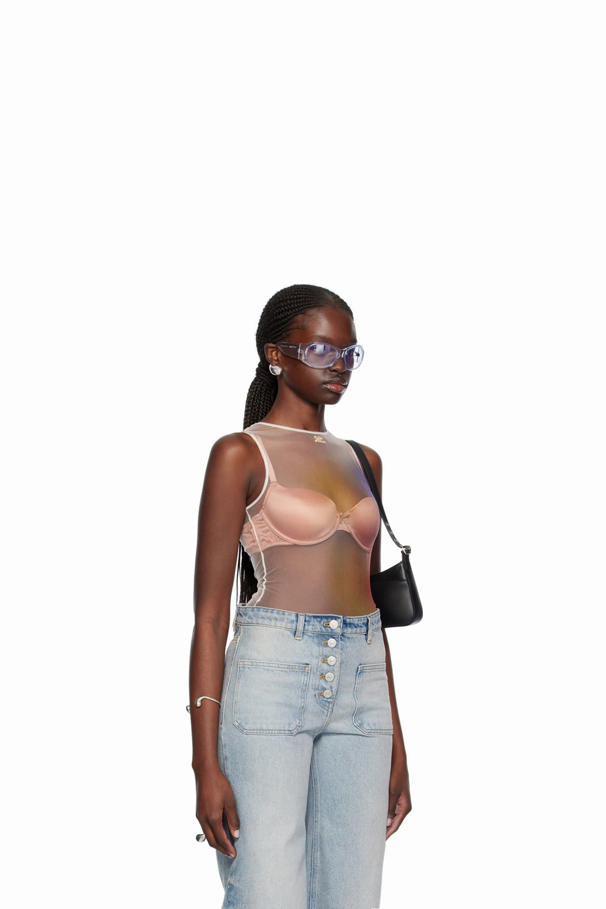 Sheer stretch nylon tulle bodysuit. Iridescent effect throughout.