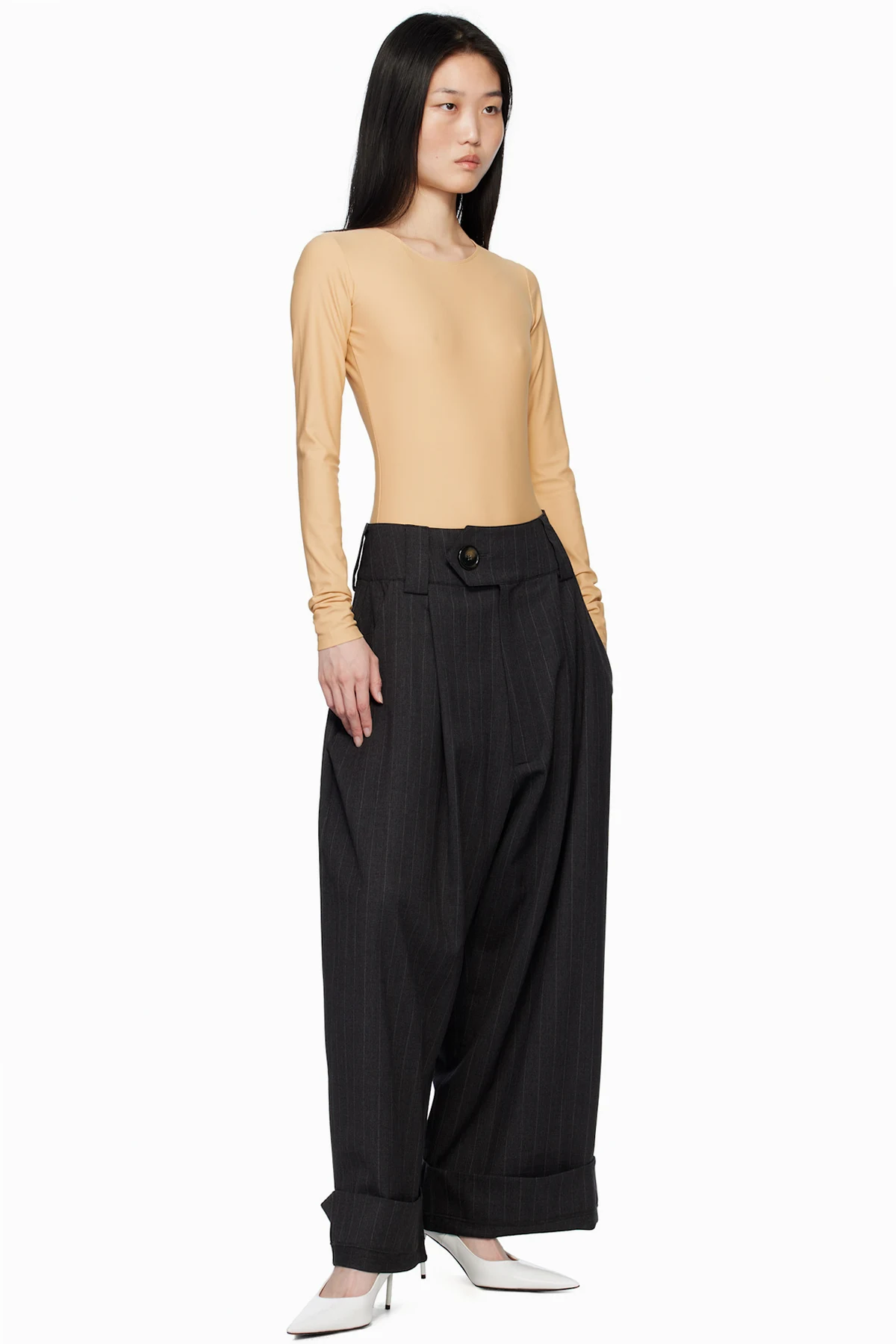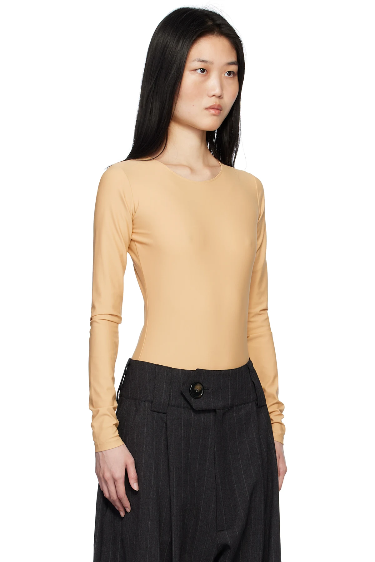 Stretch recycled nylon jersey bodysuit.