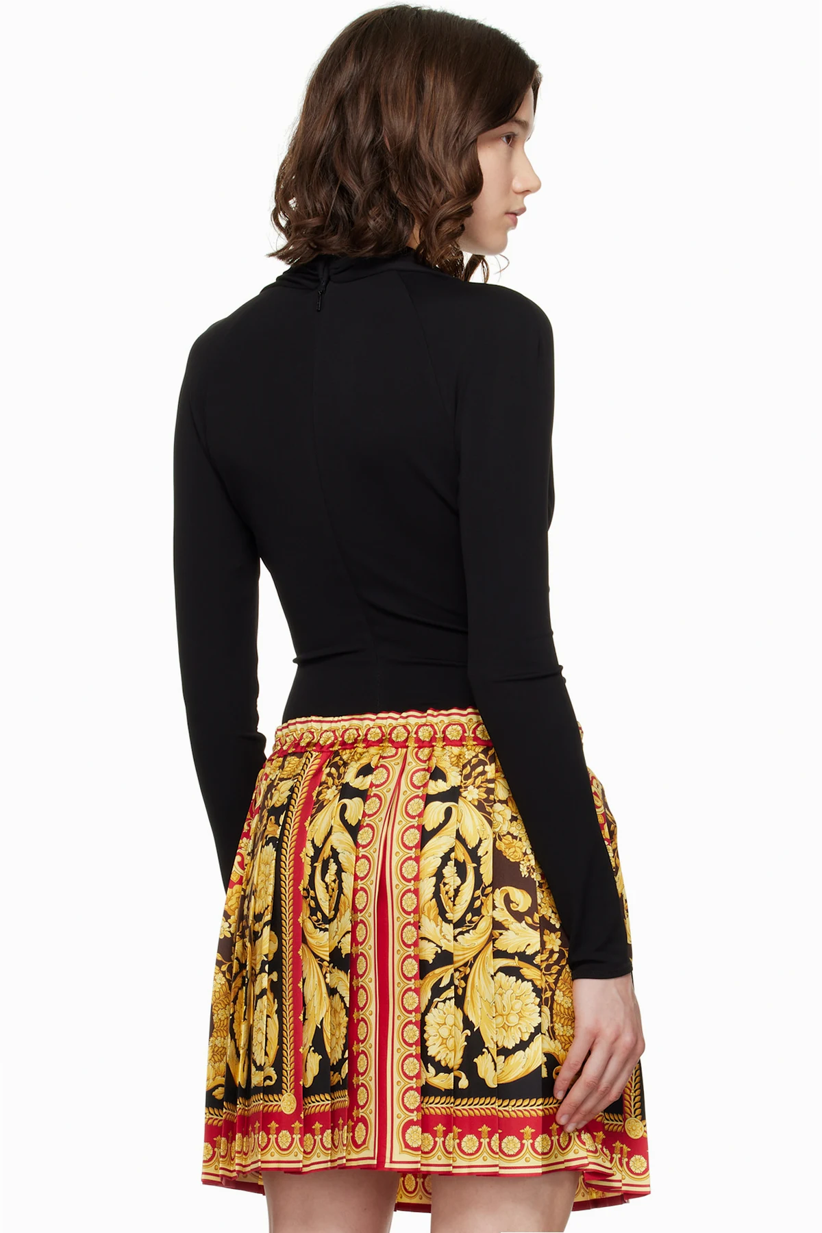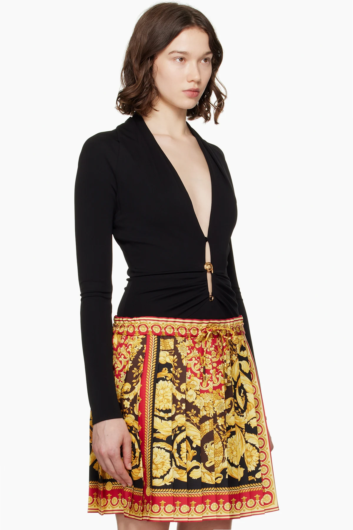 Versace Black Safety Pin Draped Fitted Bodysuit