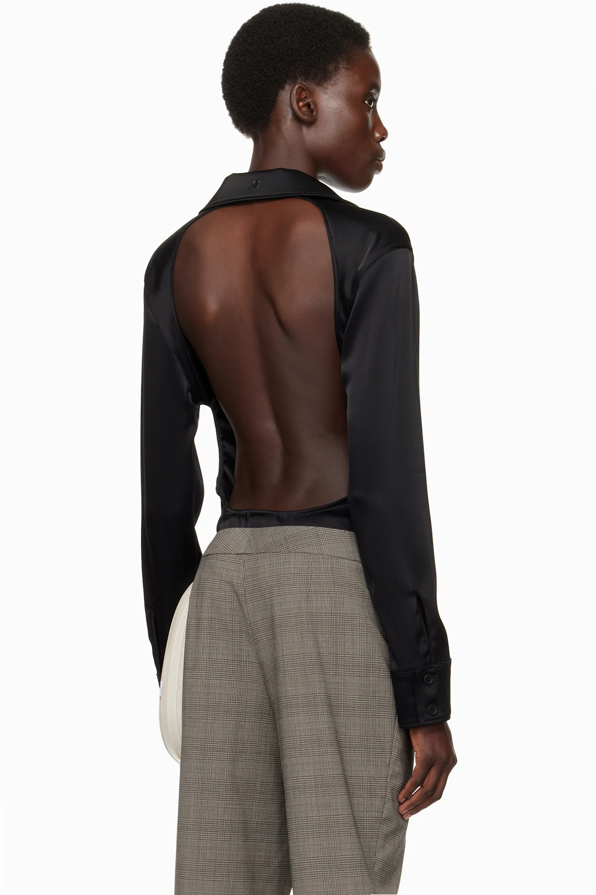 Courrèges Black Backless Satin Bodysuit