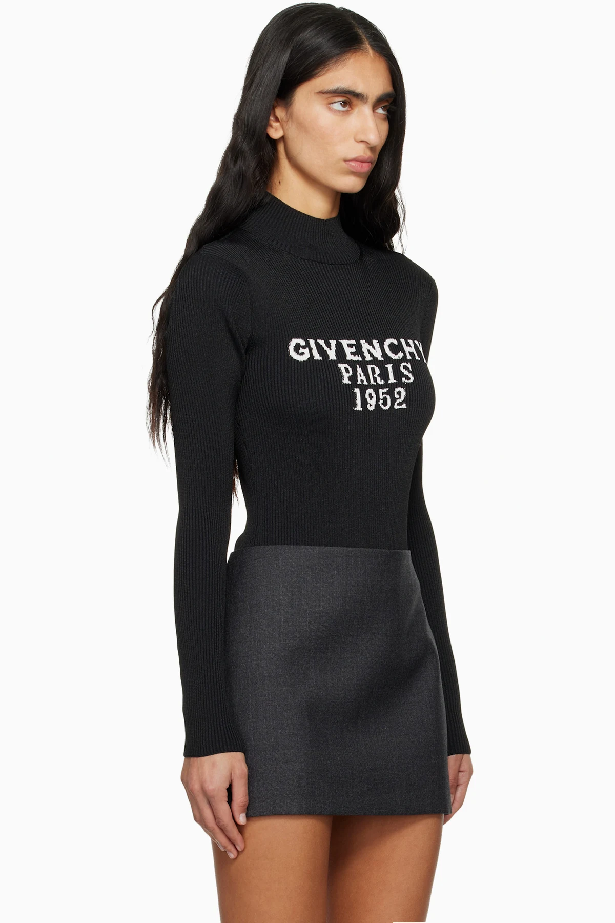 Givenchy Black Fine Rib 'Givenchy' Signature Bodysuit