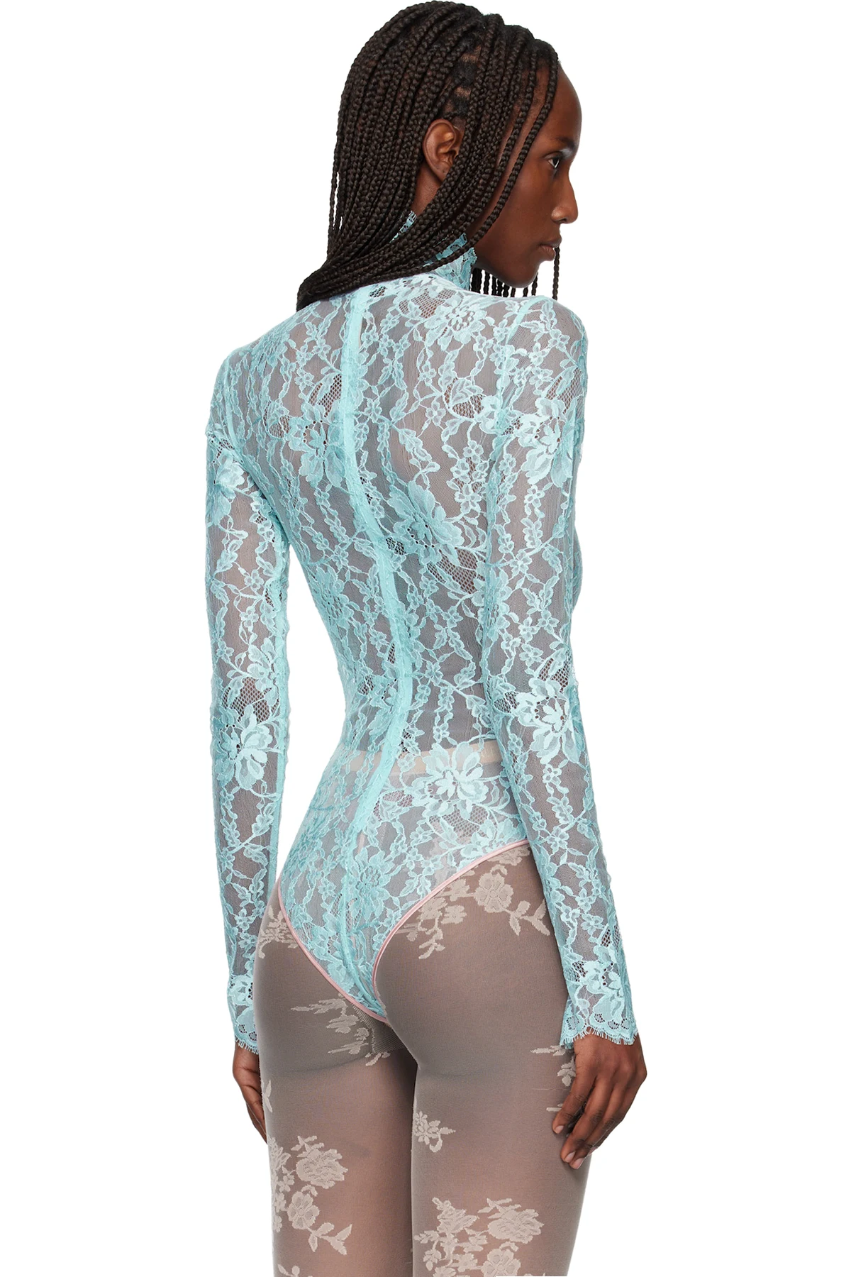 Valentino Blue Floral Lace Bodysuit