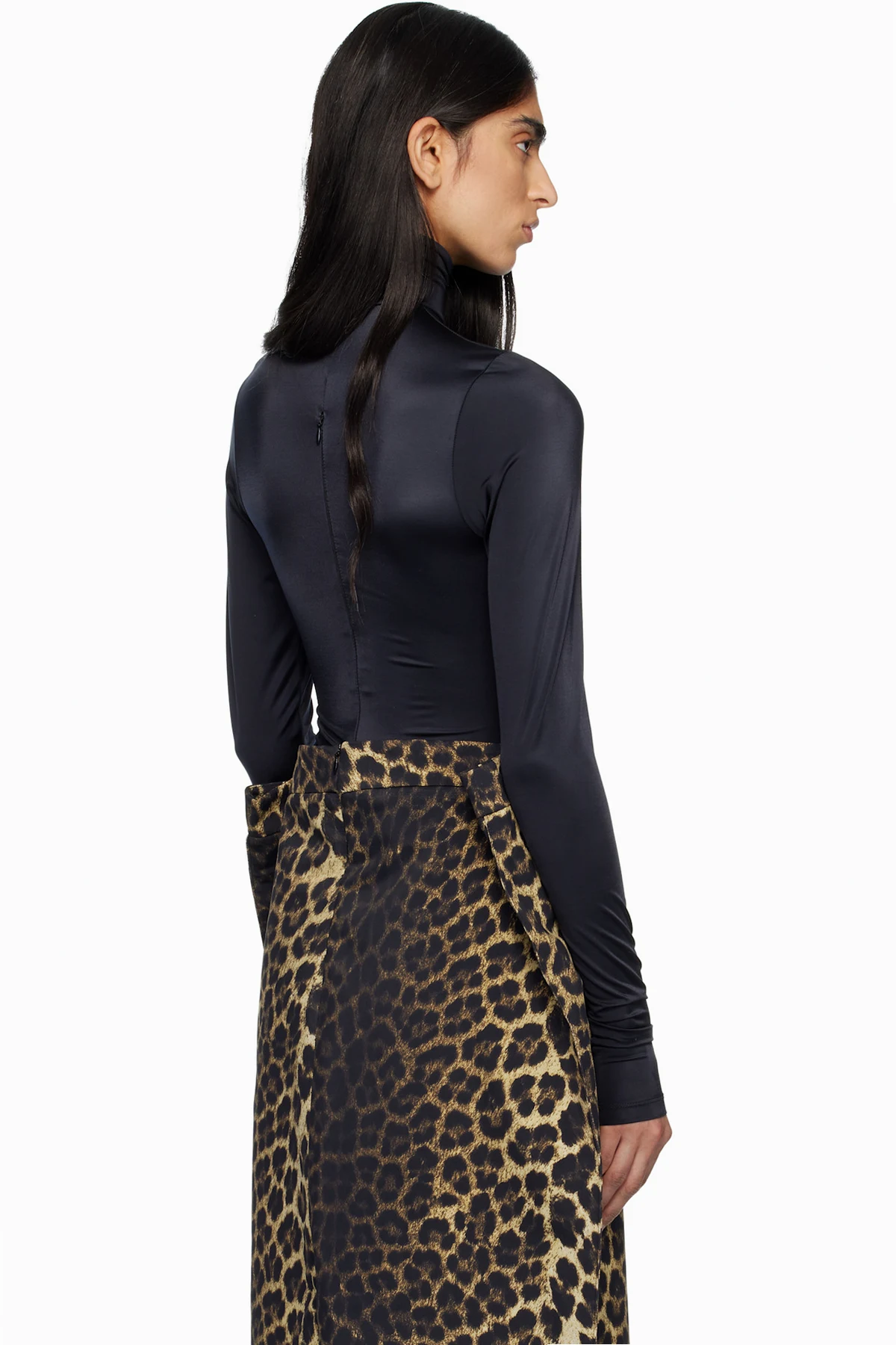 MARIE ADAM-LEENAERDT Black High Neck Body Zip Cover Top