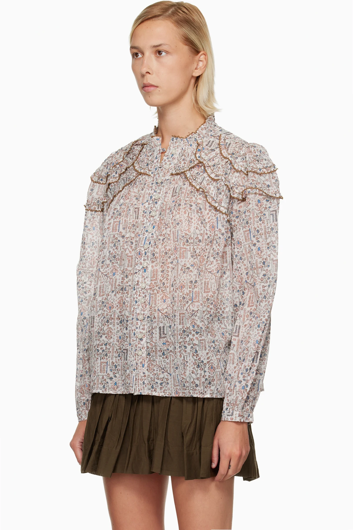 Semi-sheer cotton poplin blouse.