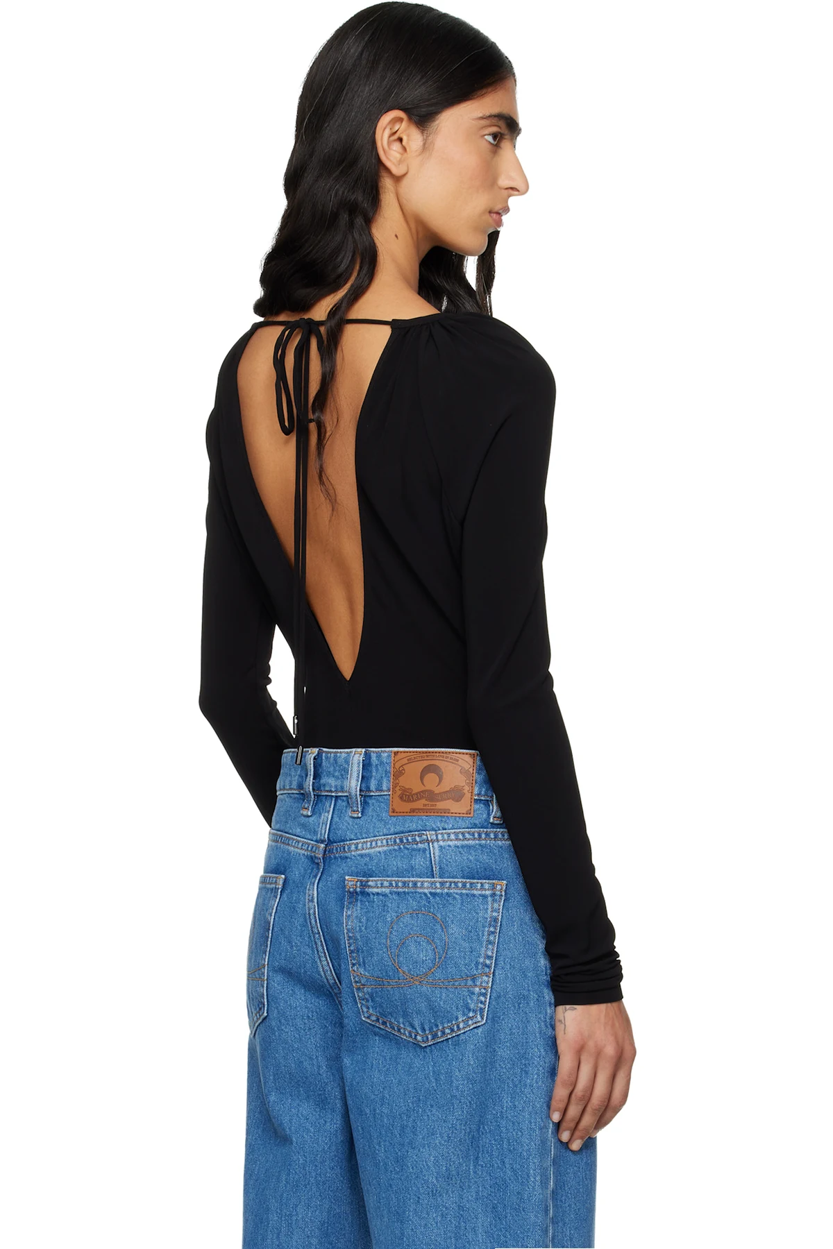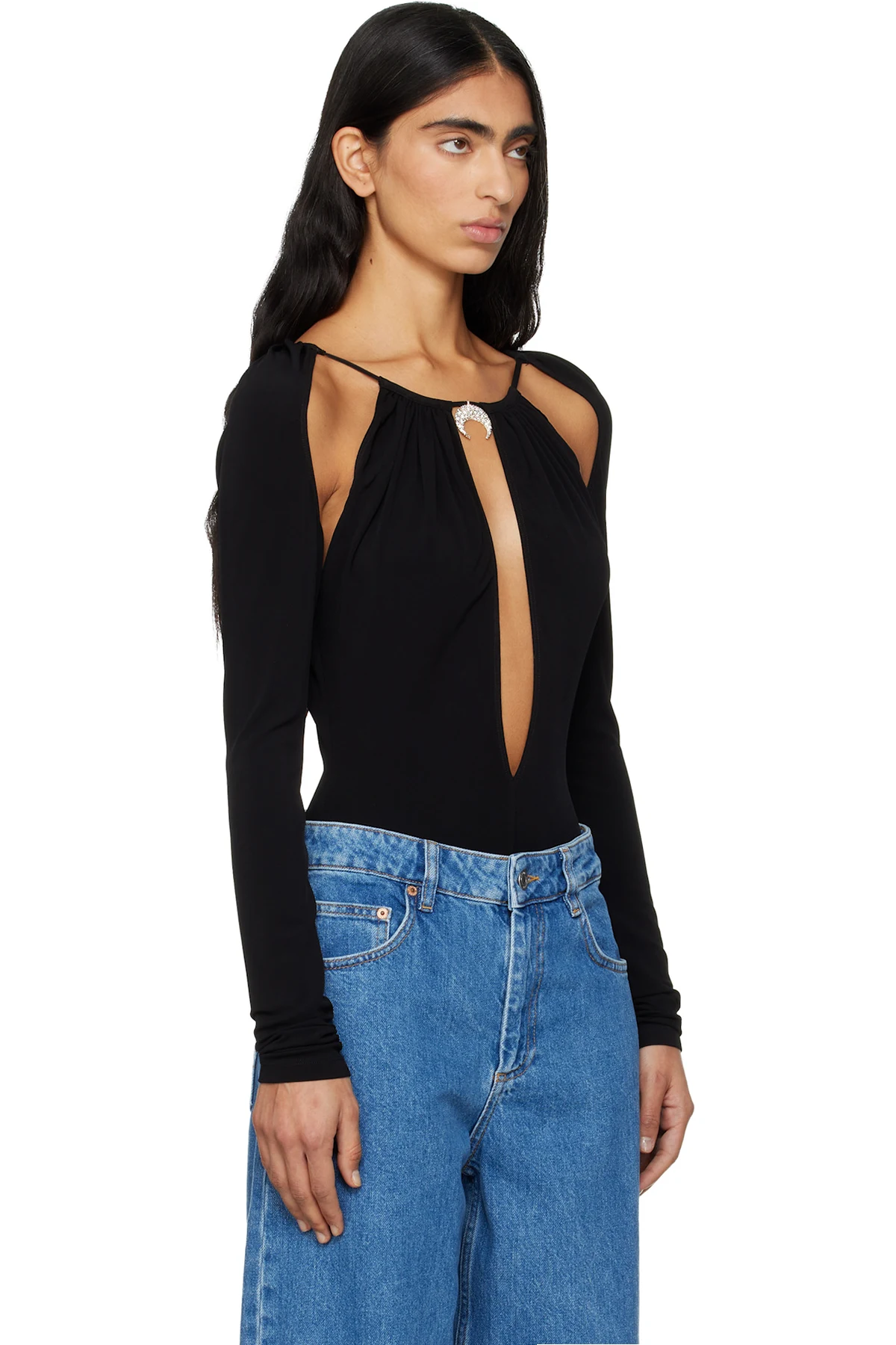 Marine Serre Black Draped Jersey Ls Crewneck Bodysuit