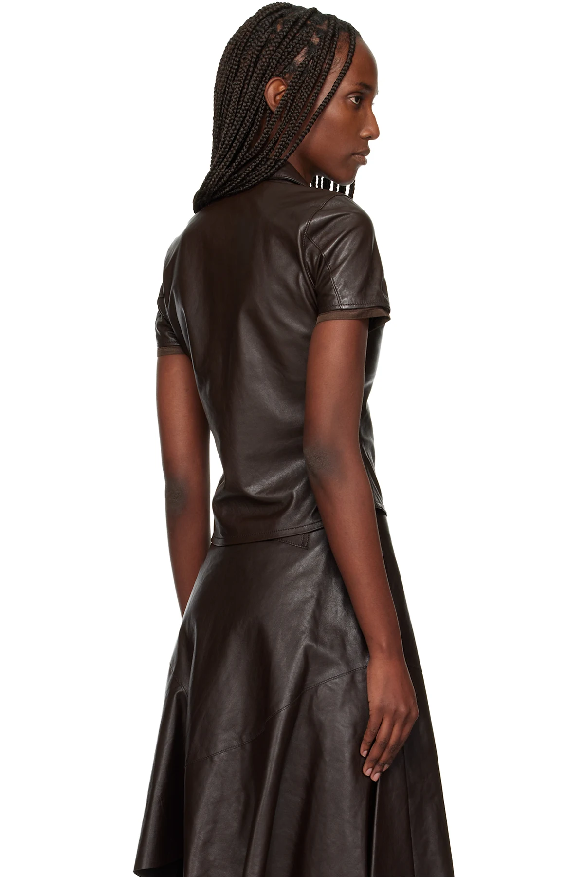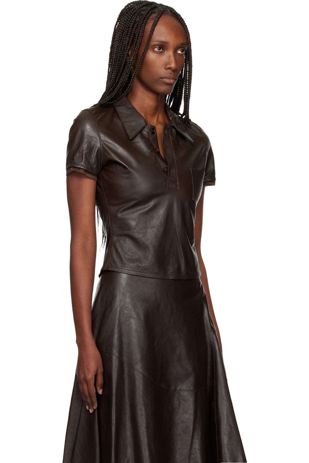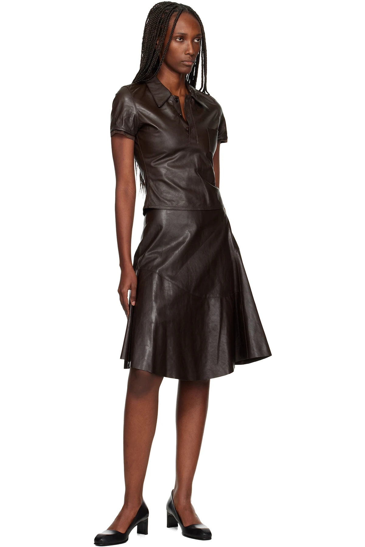 Body: 100% calfskin. Trim: 100% cotton. Lining: 52% viscose, 48% cotton.