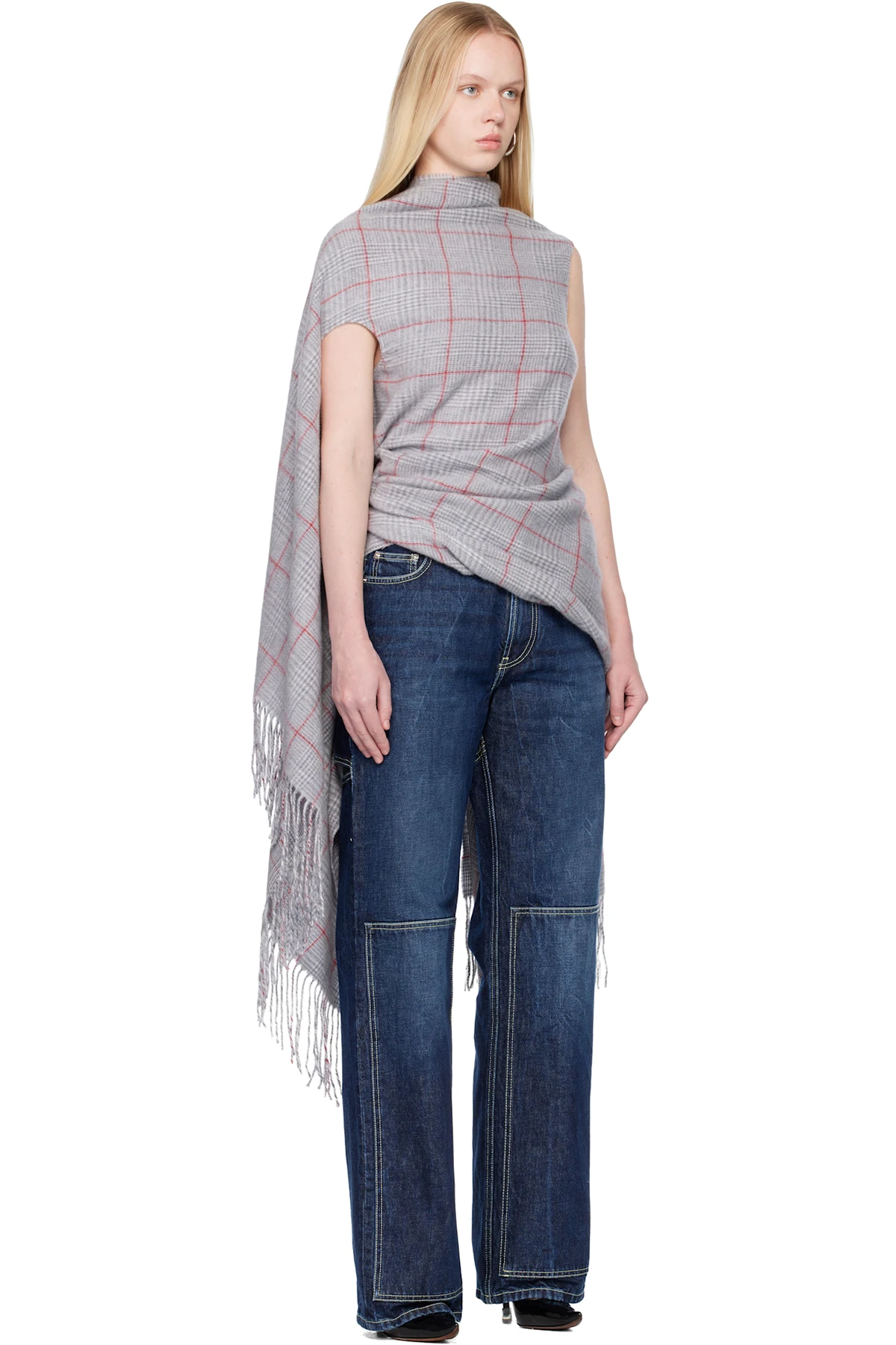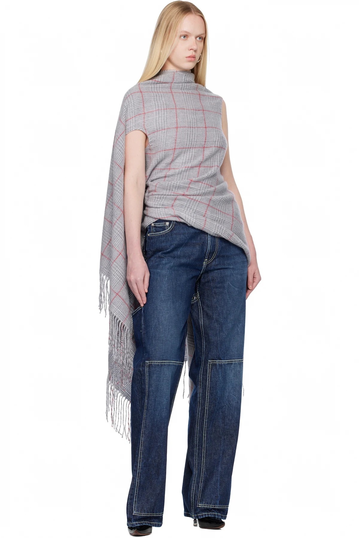 Jean Paul Gaultier Gray Back Closure Scarf Draped Blouse