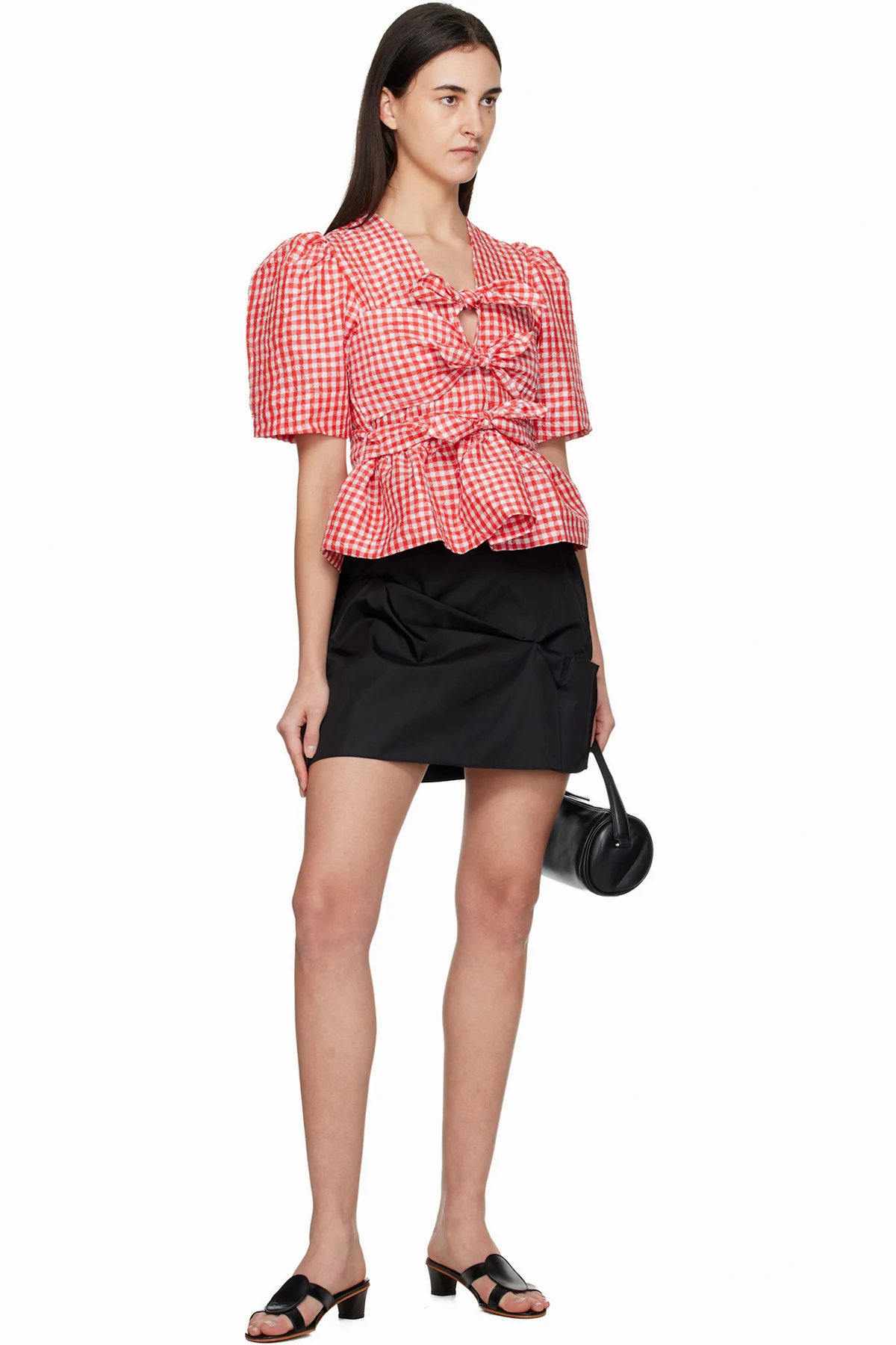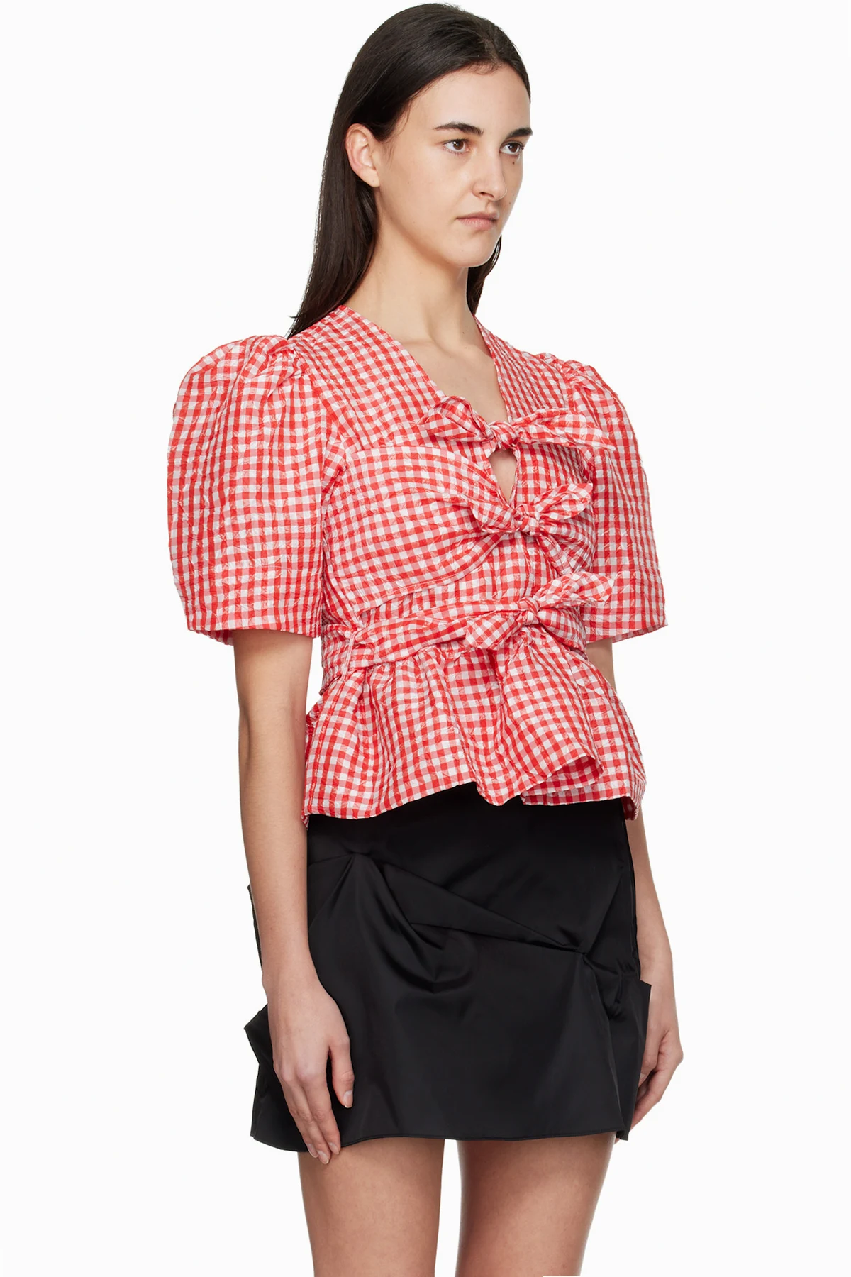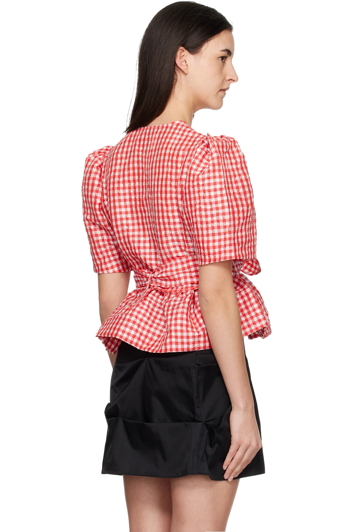Ganni Red Crinkled Check Taffeta Blouse